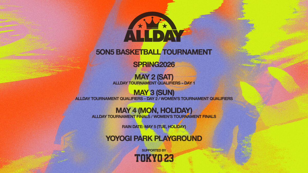 代々木公園バスケットボールコートを舞台に、2005年に産声を上げたALLDAY。今大会でついに50回目のトーナメント開催を迎える。 ゴールデンウィークの3日間、第50代目王者を決定する「ALLDAY SPRING 202