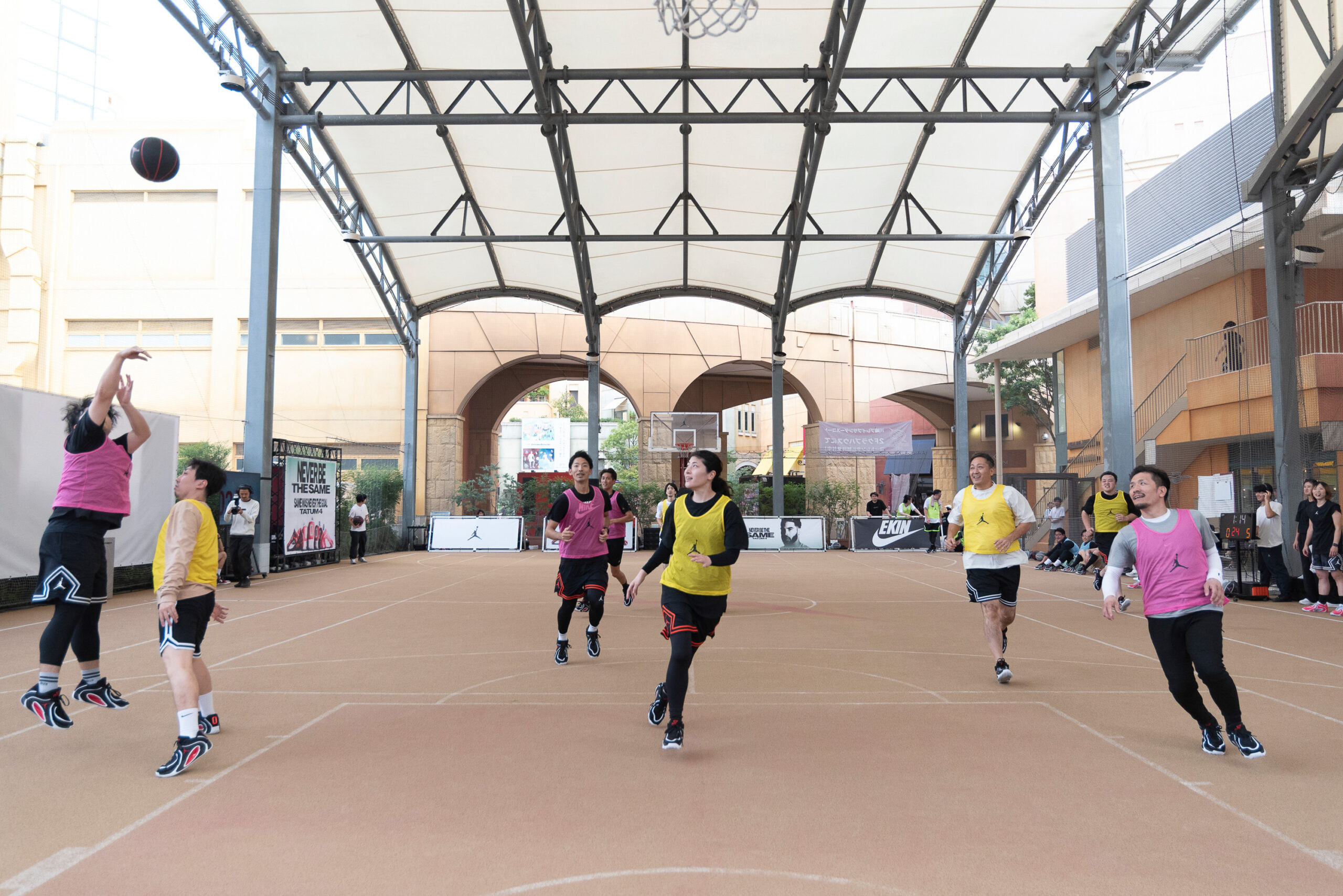 例えば、オールコートを使ったレイアップやプルアップに取り組んだのち、1分30秒でどちらが多く得点を決められるかチームの対抗戦が行われたほか、アウトナンバーシチュエーションのメニューも組まれた。2対1から始まり、3対2、4対3、5対4、5対5と段階的にプレーヤーが増えていき、途中でドリブル2回までというルールも設定。好プレーにはコートサイドから拍手が湧いたが、終わった後には膝に手をついたスタッフの姿もあったほど。クリニックの最後には、大神さんがレフェリーとMCを務めながら、5対5の3分ミニゲームも繰り返し行われた。