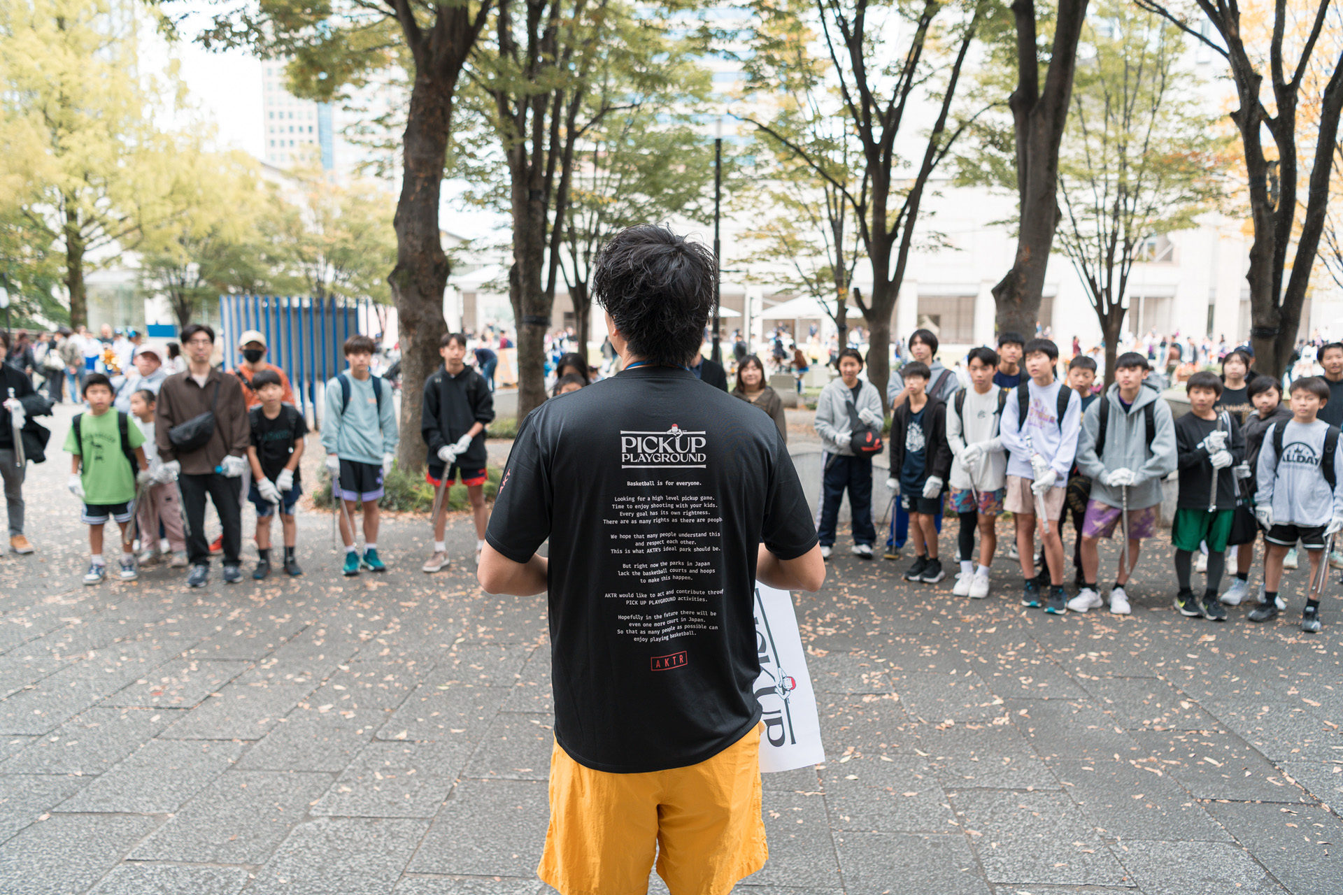 今回イベントの冒頭に行われるゴミ拾いは、その象徴でもある。ストリートのピックアップゲームに、「コートを自分たちで守る行為」 を含めることで、自然と会話が生まれ、顔見知りが増え、コミュニティが育つ。そのコミュニティは、やがてコートに自治を生み、利用者のモラルによってルールが成立し、「守られるコート」から「自走するコート」へと変わっていく。