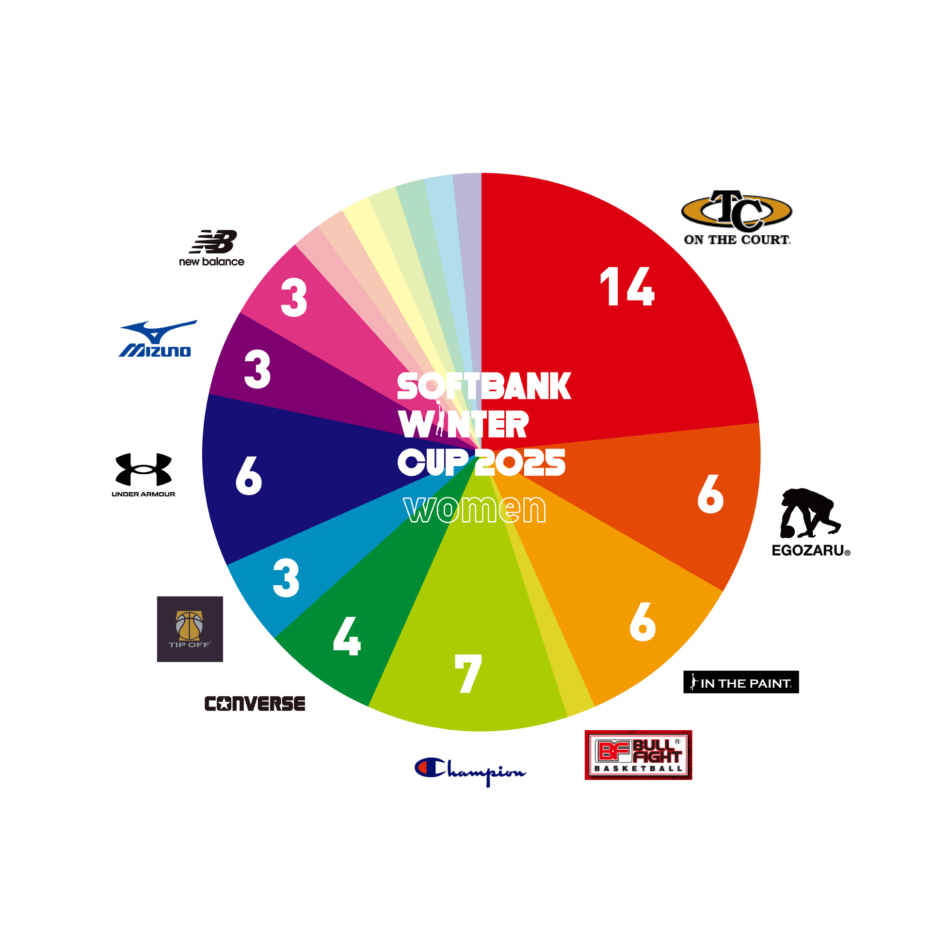 SoftBank ウインターカップ2025に出場したチーム数は、120チーム(男女各60チーム)ある。ユニフォームブランドの勢力図作成にあたっては、出場校をニュース記事や映像、SNSを確認したしたほか、バスケットボール関係者の知見も借りてまとめている。全体的な傾向を明らかにするとともに地域差、上位校の着用動向なども探った。