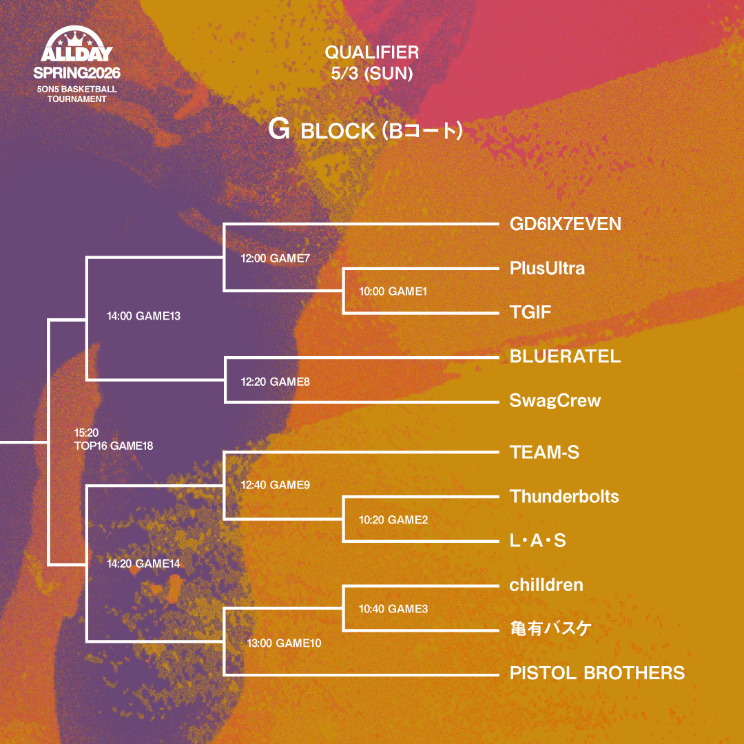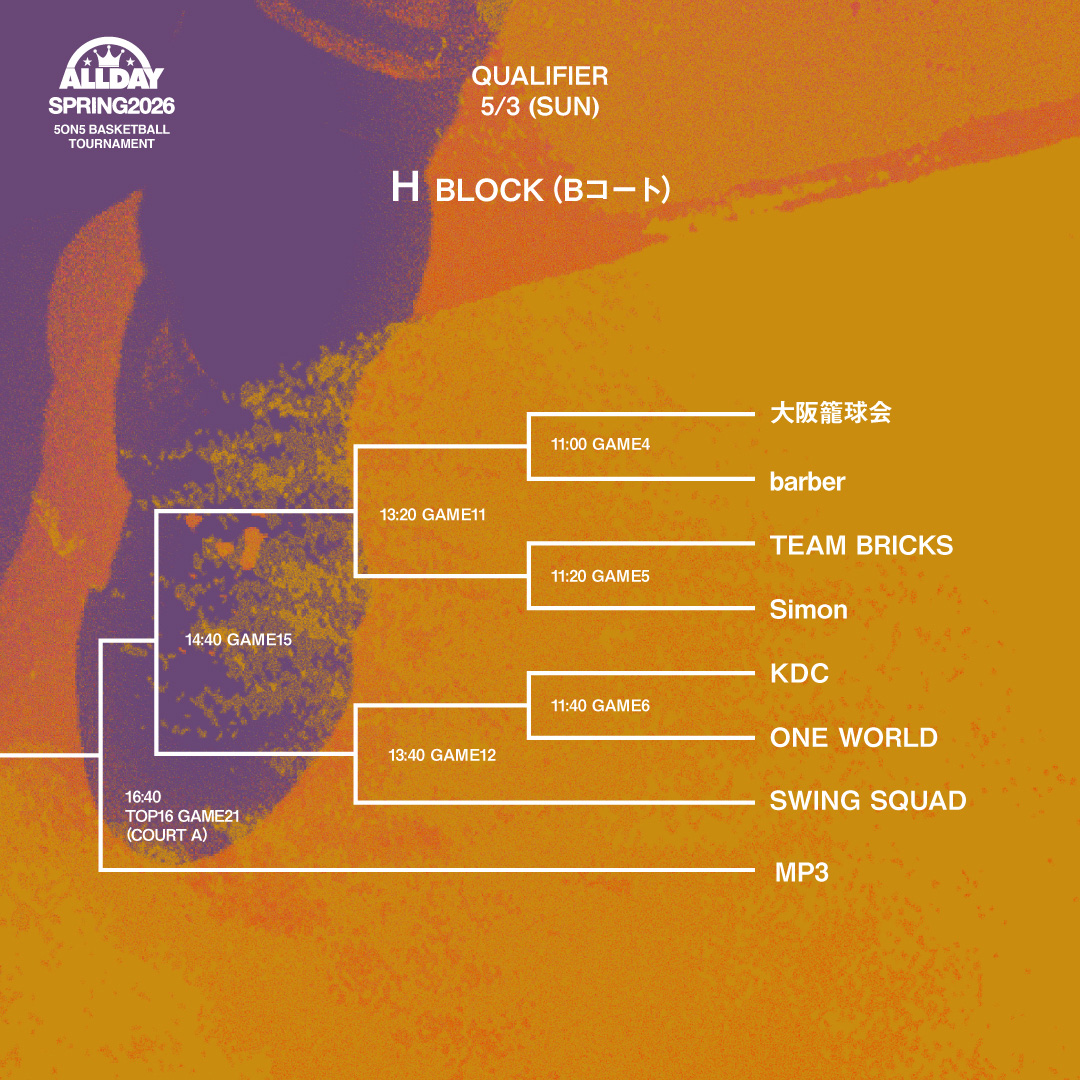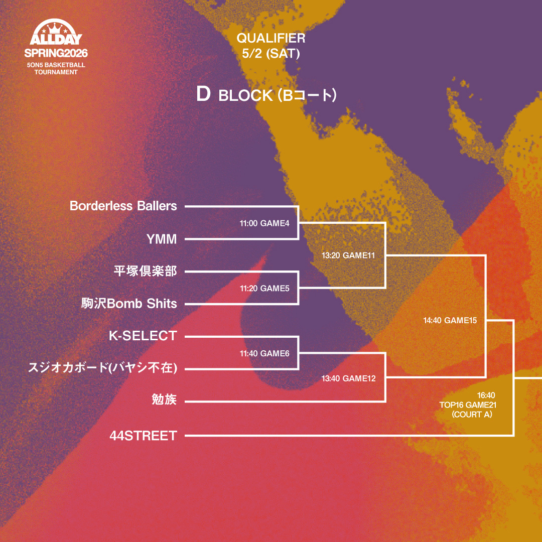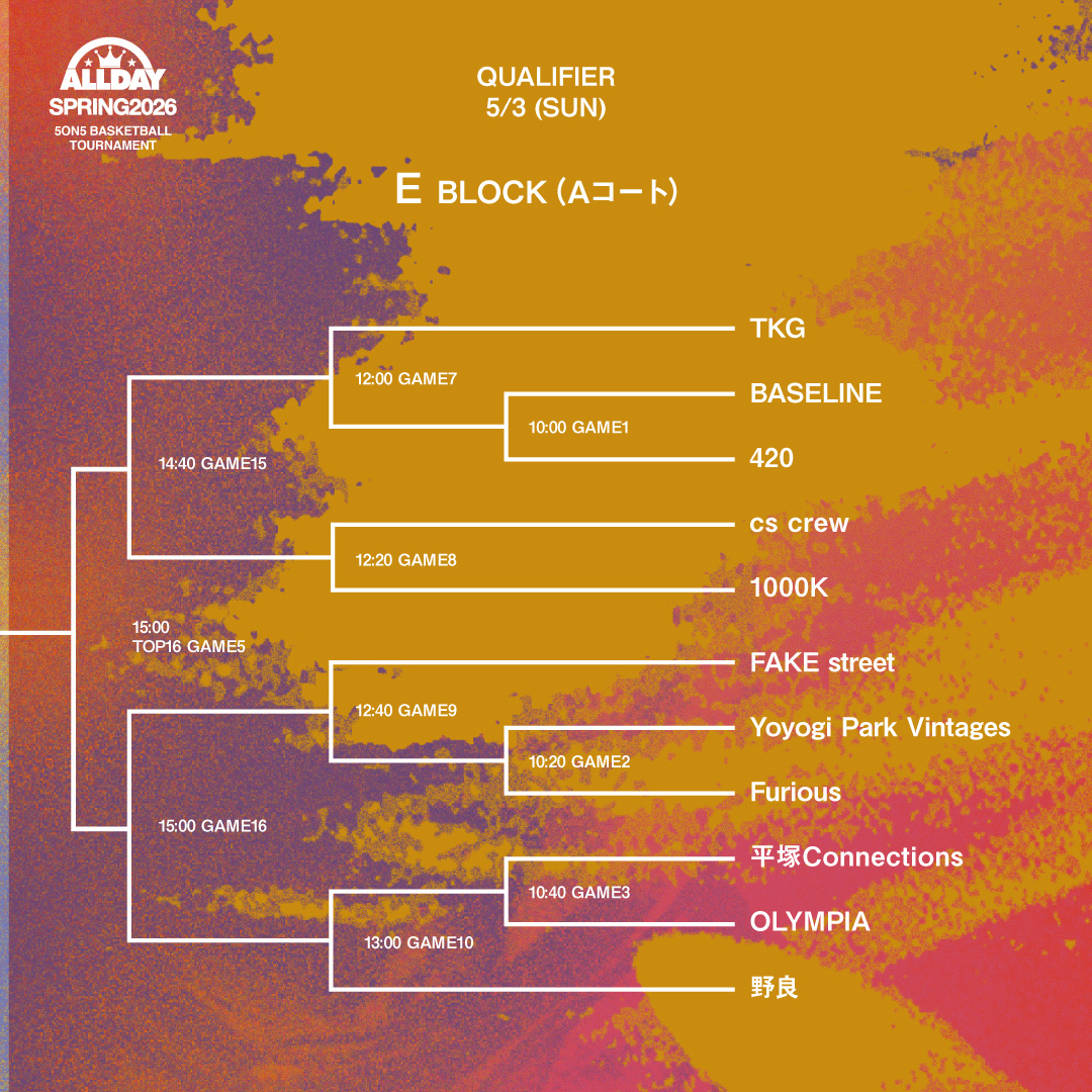 2日(土)にA〜Dブロック、3日(日)にE〜Hブロックを消化し、各ブロックを勝ち抜いた8チームが最終日4日のベスト8からファイナルトーナメントへ。ここで第50代ALLDAY王者が決まる流れだ!
