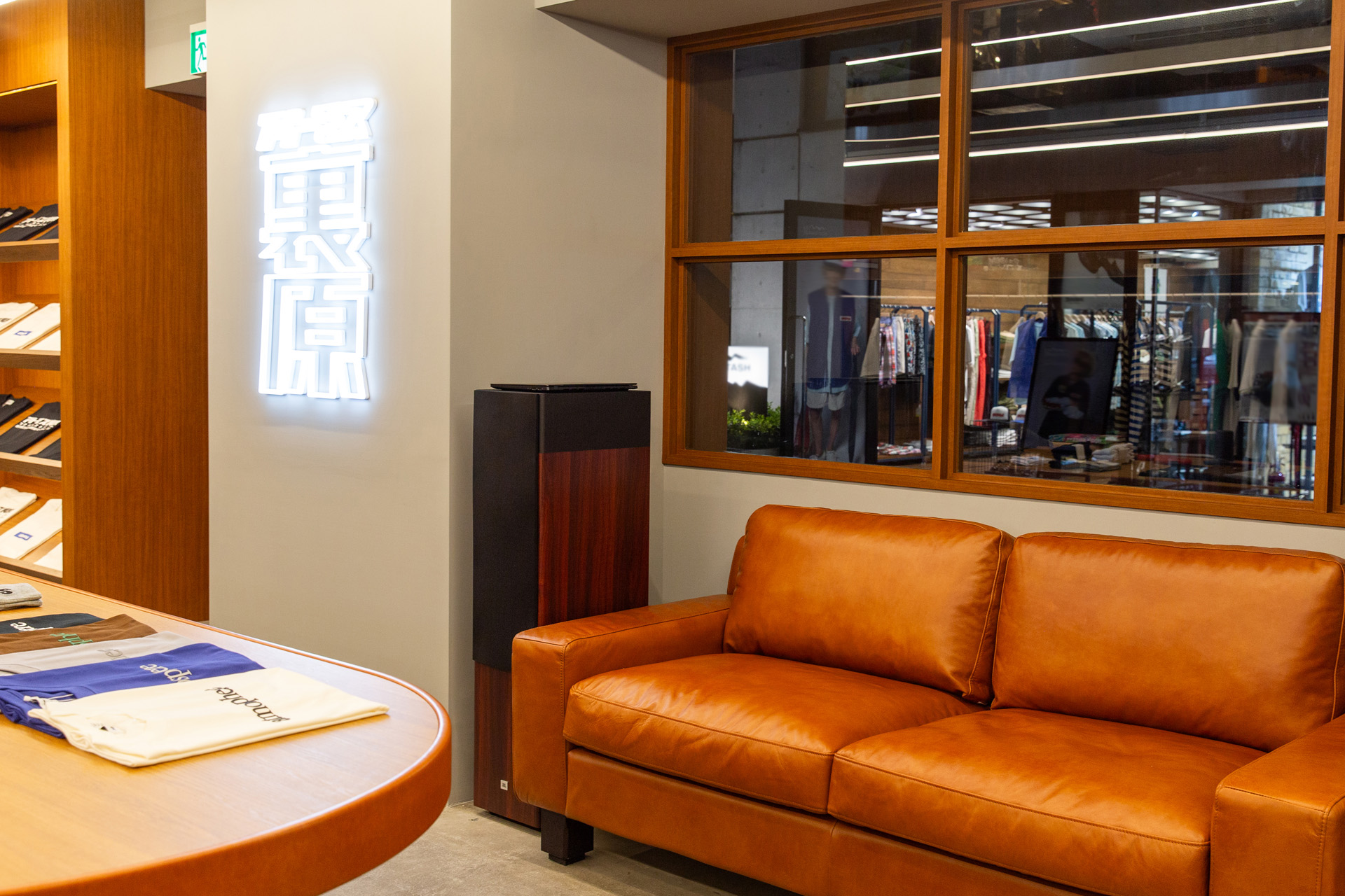 「community」、「trad」 、「chillout」 3つのキーワードを軸に、「atmosisyours(アトモスイズユアーズ)」の思いを込めたストアは、トラッドな内装はカフェやロビーのような雰囲気を感じられ、くつろぎつつ自然と会話が生まれ、ゆったりとした時間の流れを感じる空間。気の合う仲間が集まり、心地よい雰囲気に包まれるコミュニティーの場所が提供される。