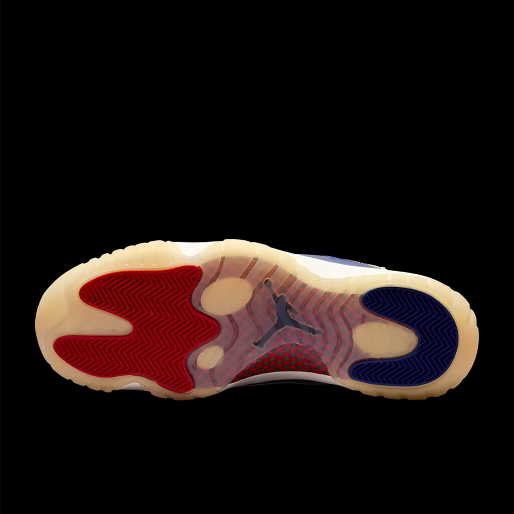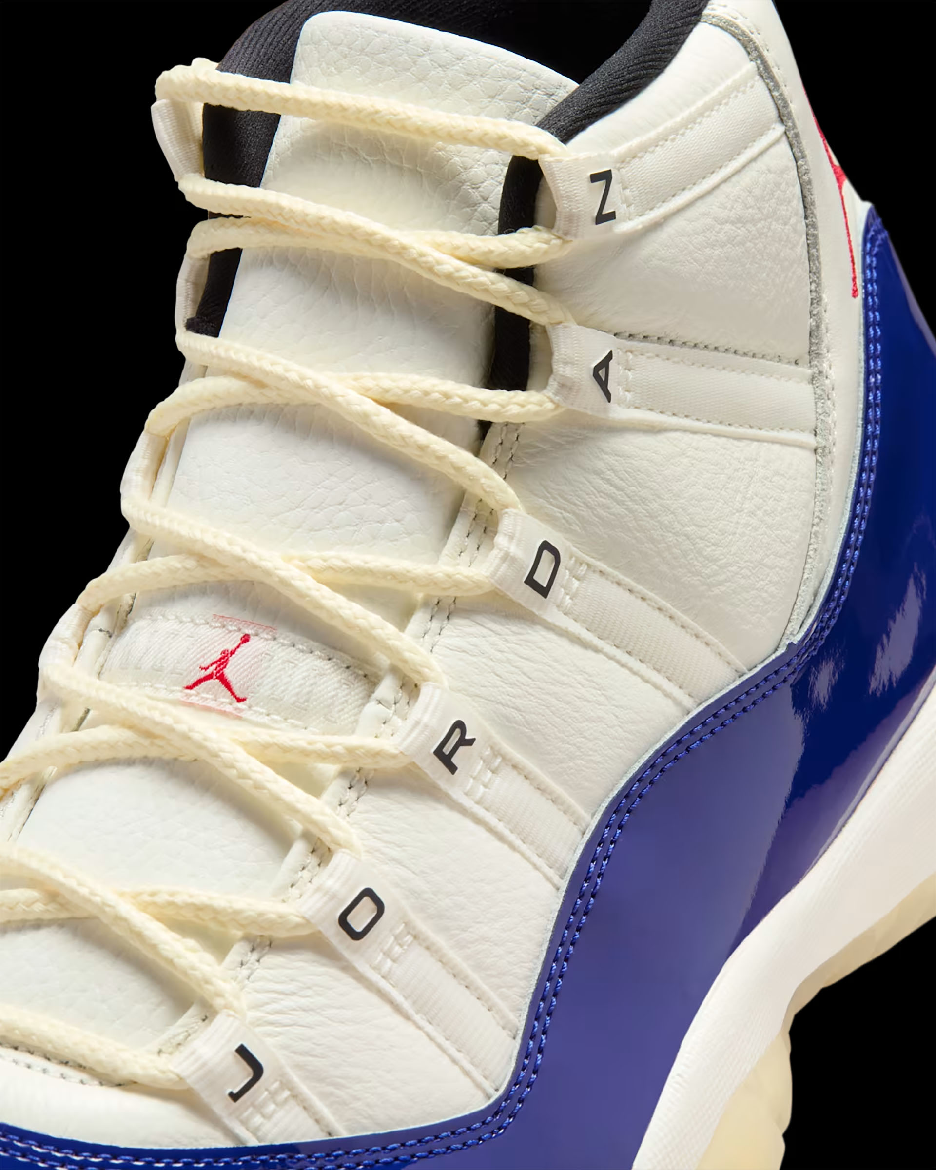 当たり前を疑い、カスタムカラーでベーシックを見事に塗り替えたエア ジョーダン 11 ‘Rare Air’。ファイヤーレッドとディープロイヤルブルーのカラーブロック、付け替え可能なシューレース、そして透明感のある色付きアウトソールを組み合わせたセイルのタンブルレザーが伝統をさりげなく纏う。「JORDAN」の文字の間を縫うように紐を結び、さぁ、まだ見ぬ地平線へと踏み出そう。