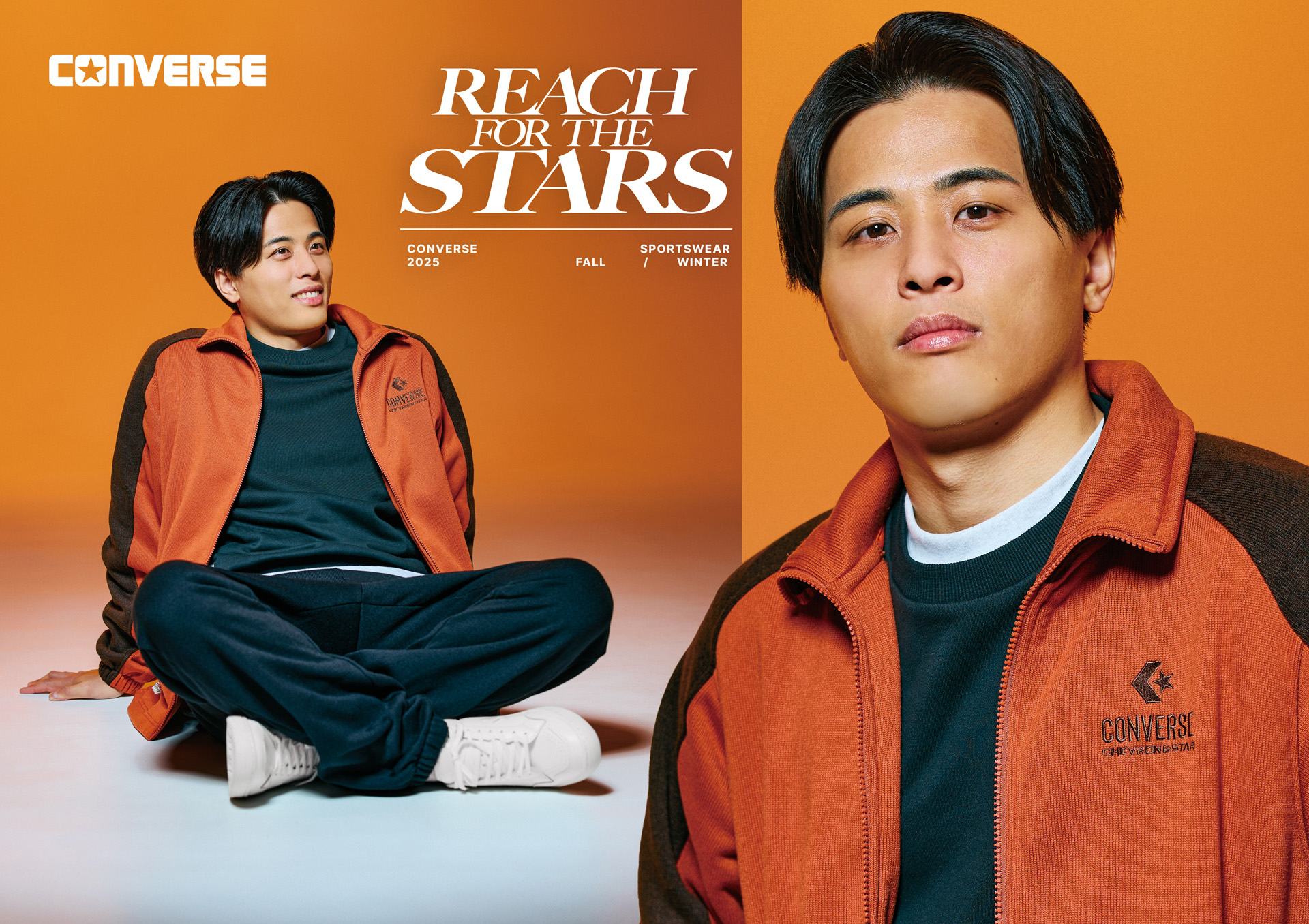 それぞれの個性が、コンバーススポーツのウェアが持つ“機能性と遊び心”を軽やかに表現し、日常からアクティブシーンまでシームレスに楽しめるスタイルを通して、コンバースが描く“機能性と遊び心”の世界観を2人が体現している。