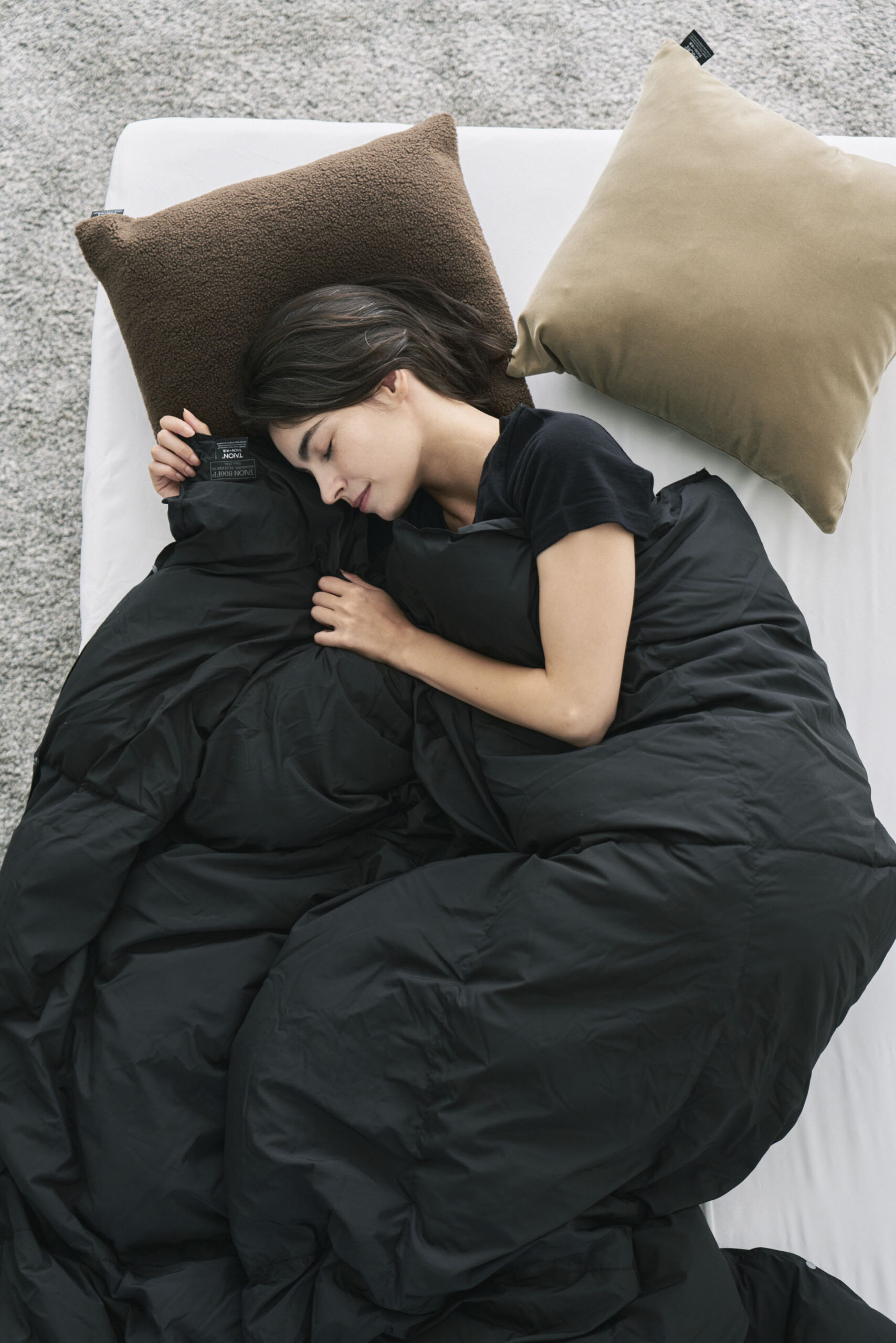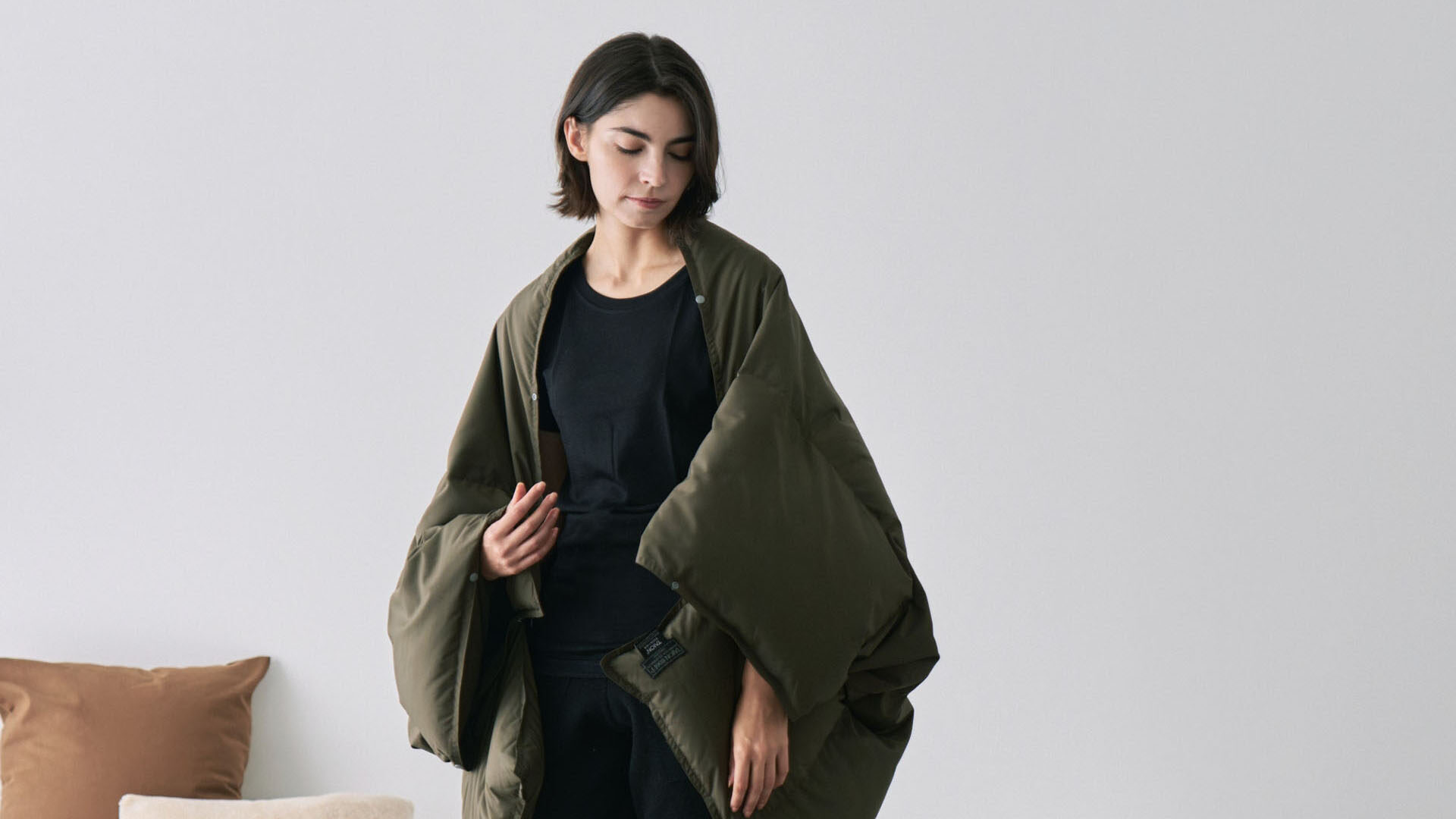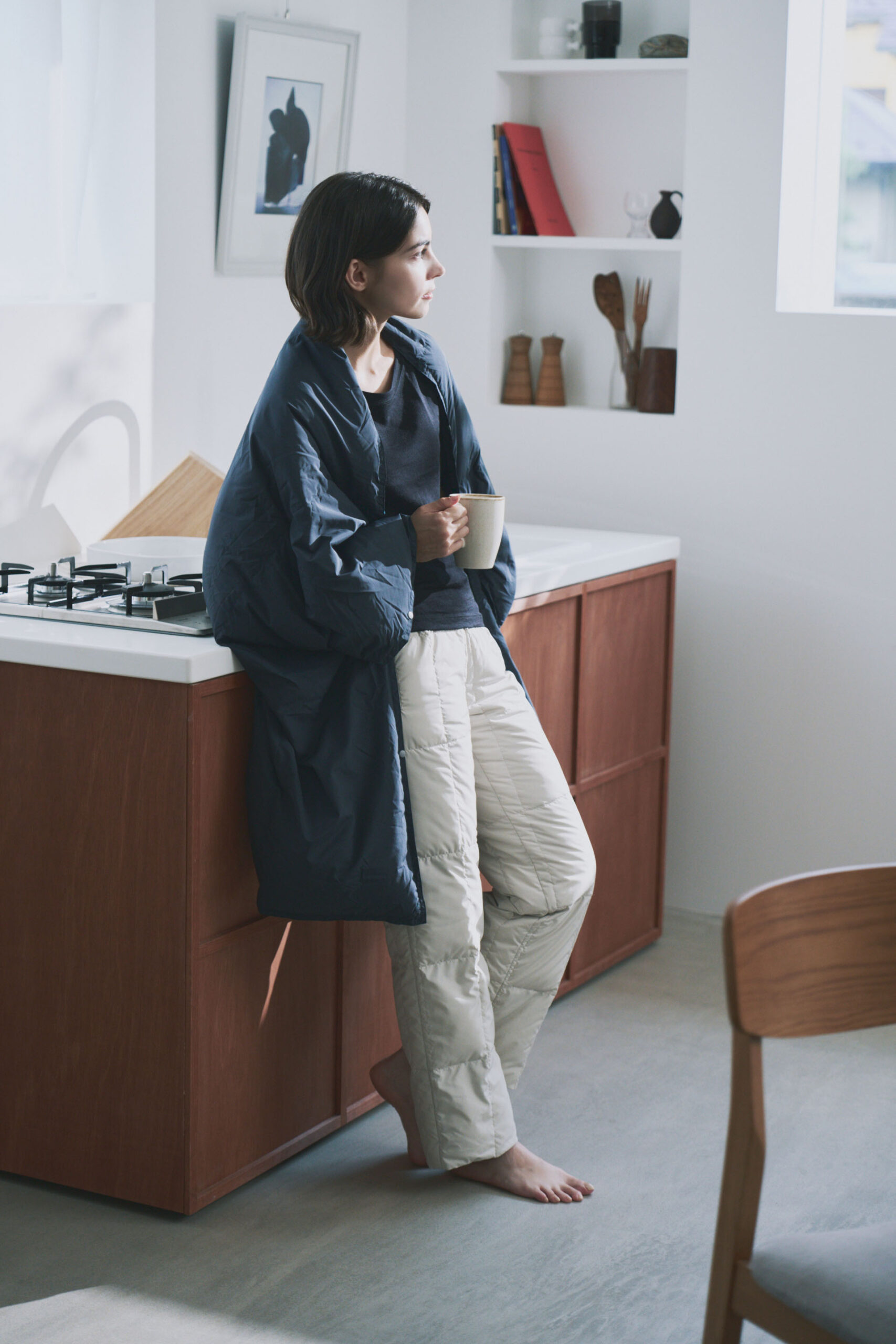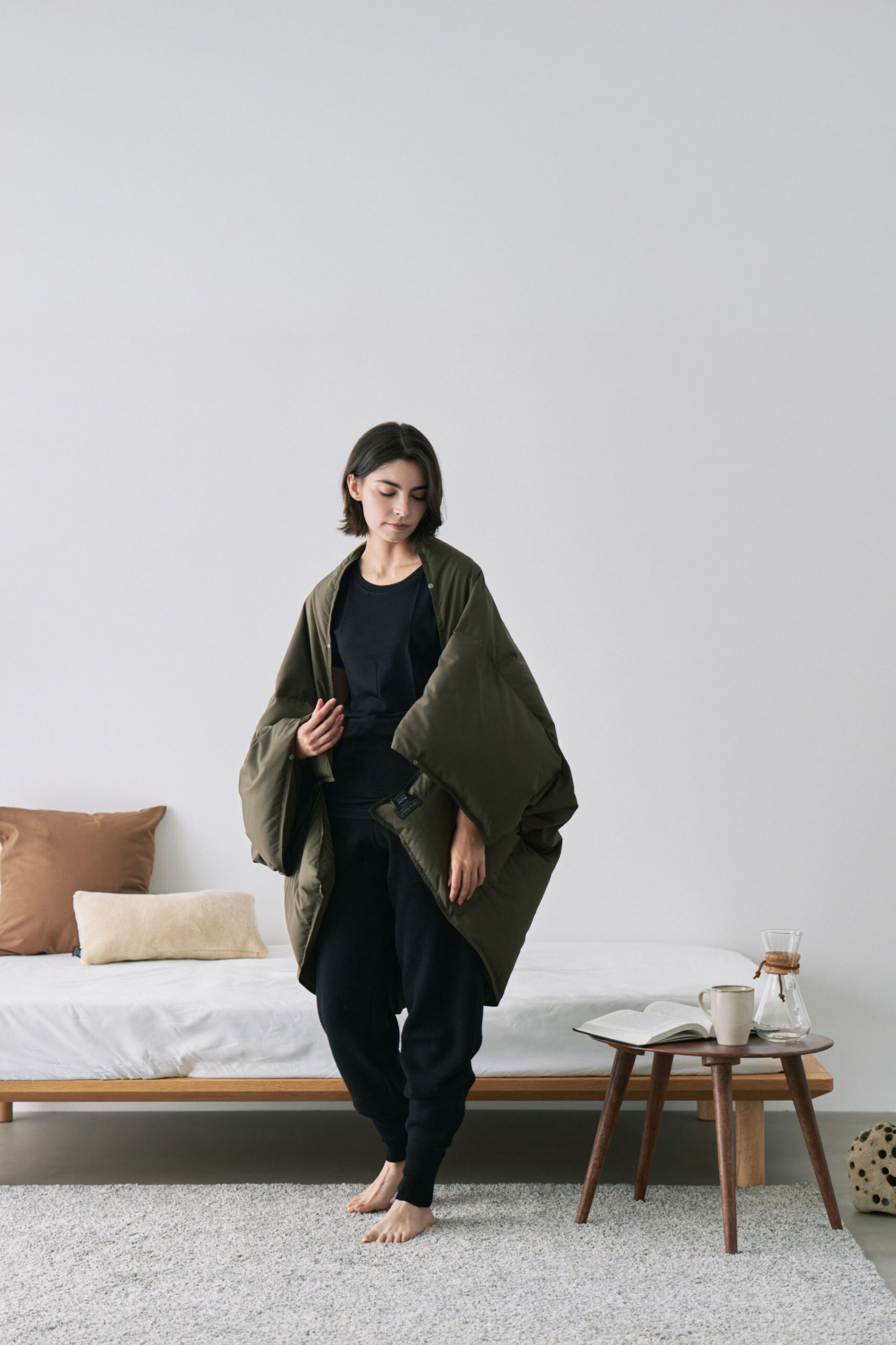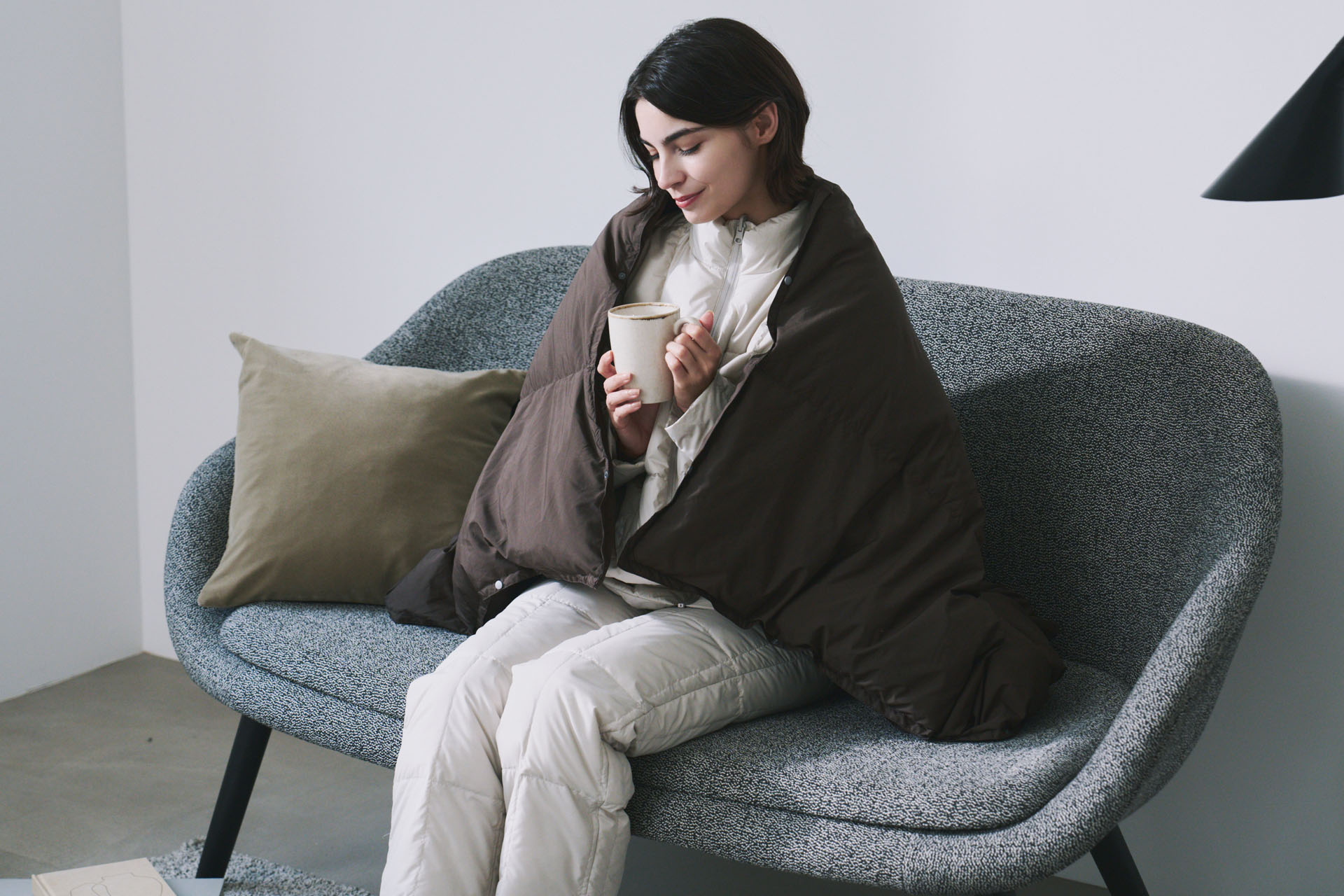 これまでの一般ダウンウェアとは異なり、“家の中で快適に過ごす”為の、機能とデザインを追求。掛け布団がクッションへと姿を変える、機能とアイデアの融合が実現しました。