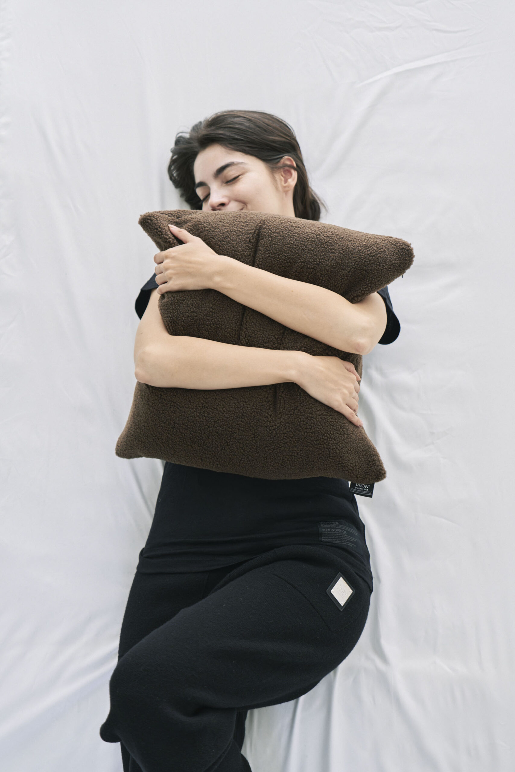 表地・裏地・ダウンの配分を調整し、ダウン布団の心地よさを追求しました。また、ダウンキルトステッチは長方形キルトステッチを採用。これは熱をムラなく保つだけでなく、クッションとして収納した際の美しい形状を保つための設計としても考慮しています。各6色展開。ワンサイズなので、ギフトシーズンにもオススメです。