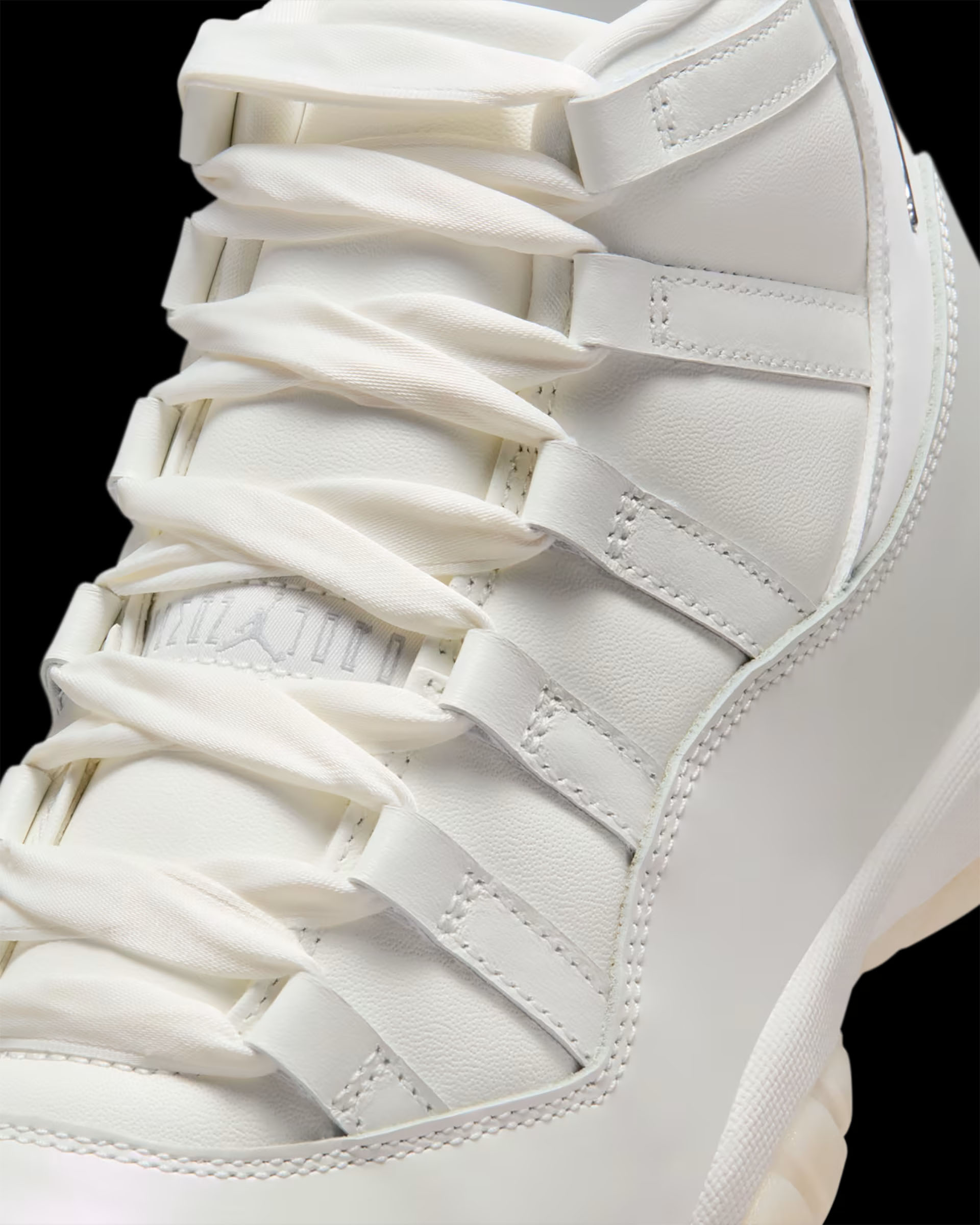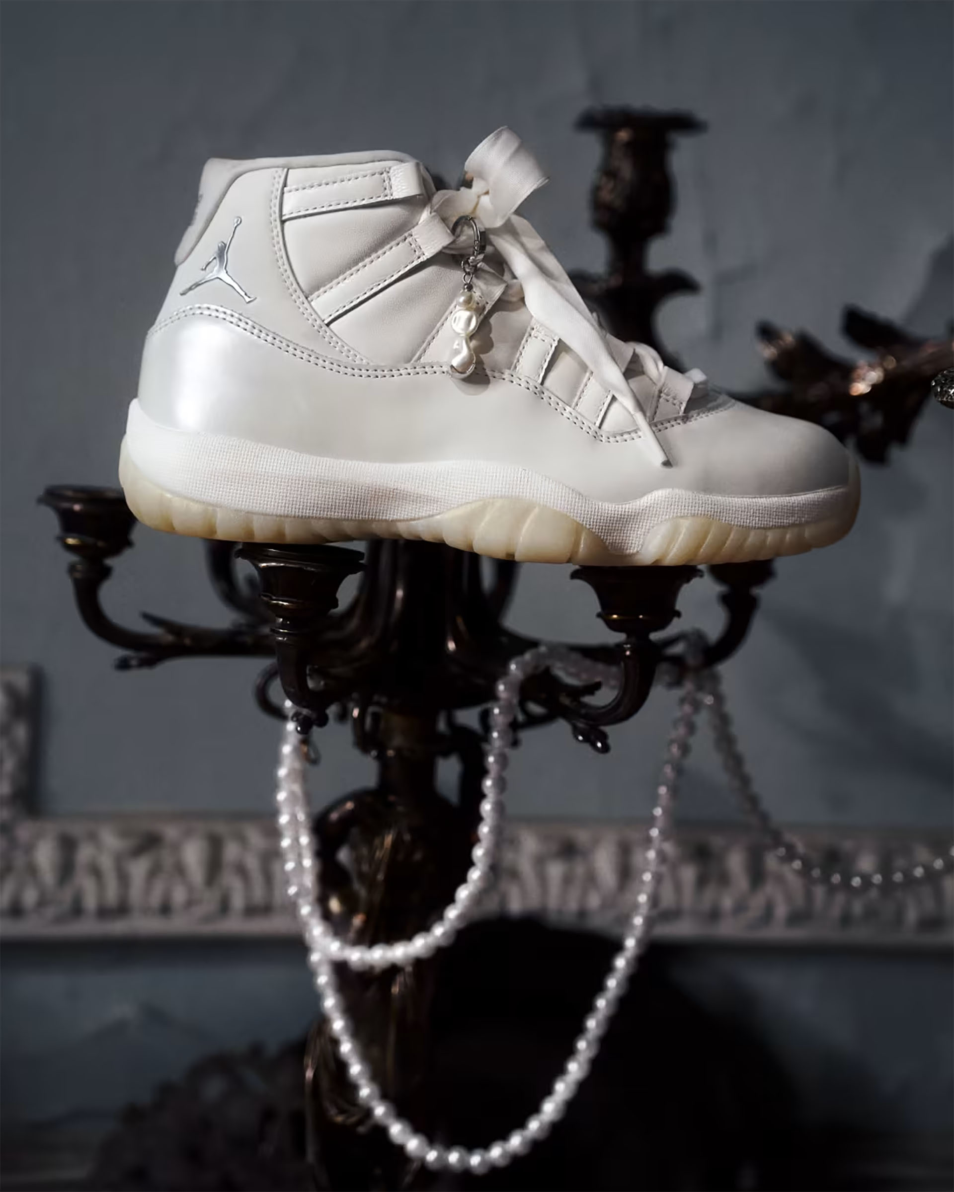 マンネリな日常に終わりを告げる、斬新なデザイン。エア ジョーダン 11 “Pearl” を特徴づけるのは、オーロラの輝きをまとったパールを思わせるディテールと、レザーのアッパー。時代を超えて受け継がれる伝統を称えながら、新たなエネルギーで勝負に挑む一足だ。リボンのシューレースのアクセントと魅惑の装飾で、まぶしすぎるほどのスポットライトを浴びる準備はもう万端。