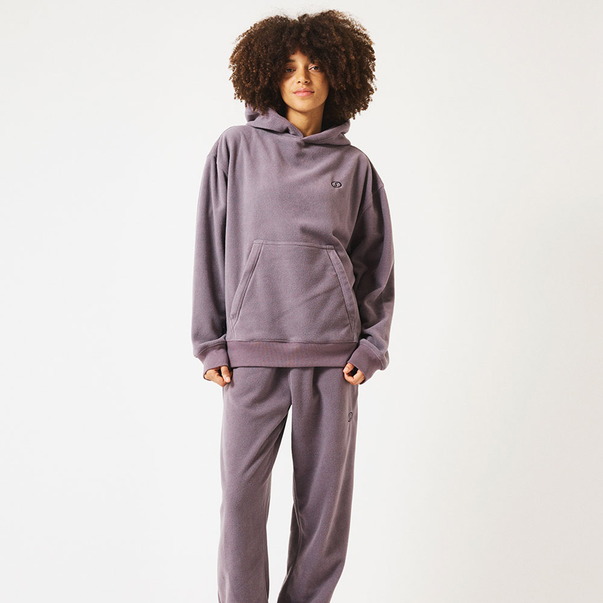 ディティールにもこだわり、ハーフジッププルオーバーとワイドパンツには裾にシルエットを調整できるゴムスピンドル、フーディーのフード中央にはフィット感を高めるゴムスピンドルを配置。さらに、フーディーにはファスナー付きのフロントカンガルーポケットを備えている。