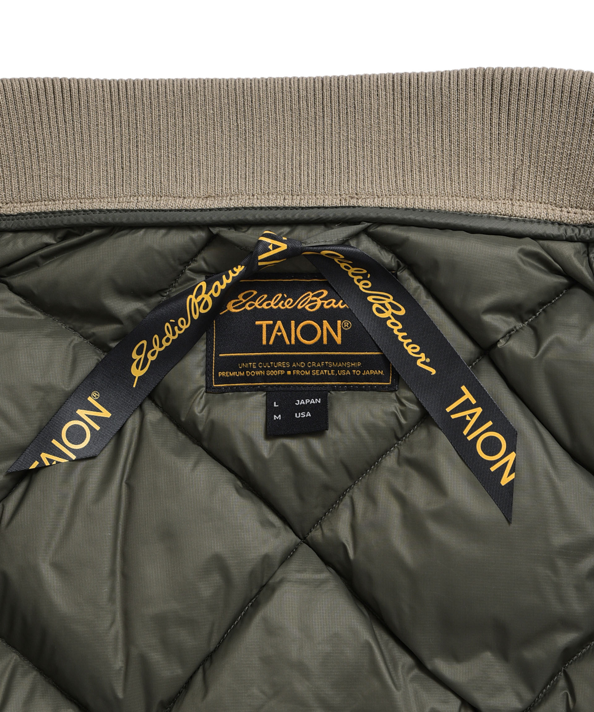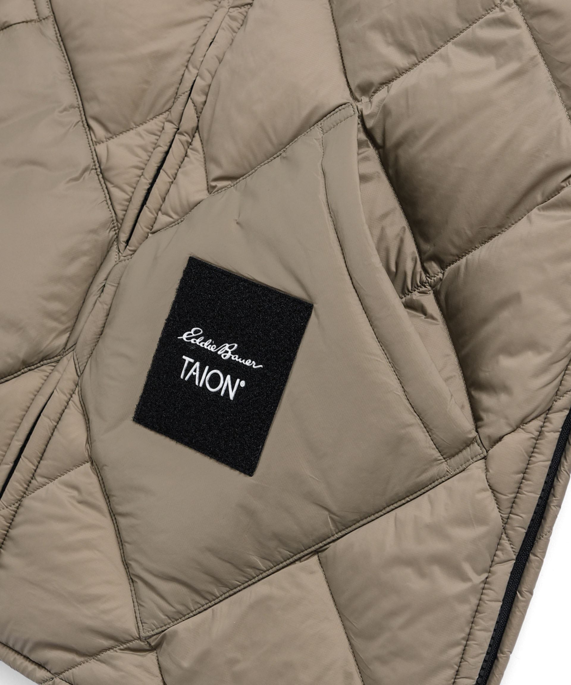 歴史あるダウンウェアの意匠、現代のダウンウェアの掛け合わせ。エディー・バウアーの文化とTAIONのクラフトマンシップが調和した、クラシックかつモダンなライトダウンジャケットの誕生です。800フィルパワーダウンを採用し、軽量ながら高い保温性を実現。フロントに Eddie Bauer × TAION 特別仕様のロゴパッチを配置しています。