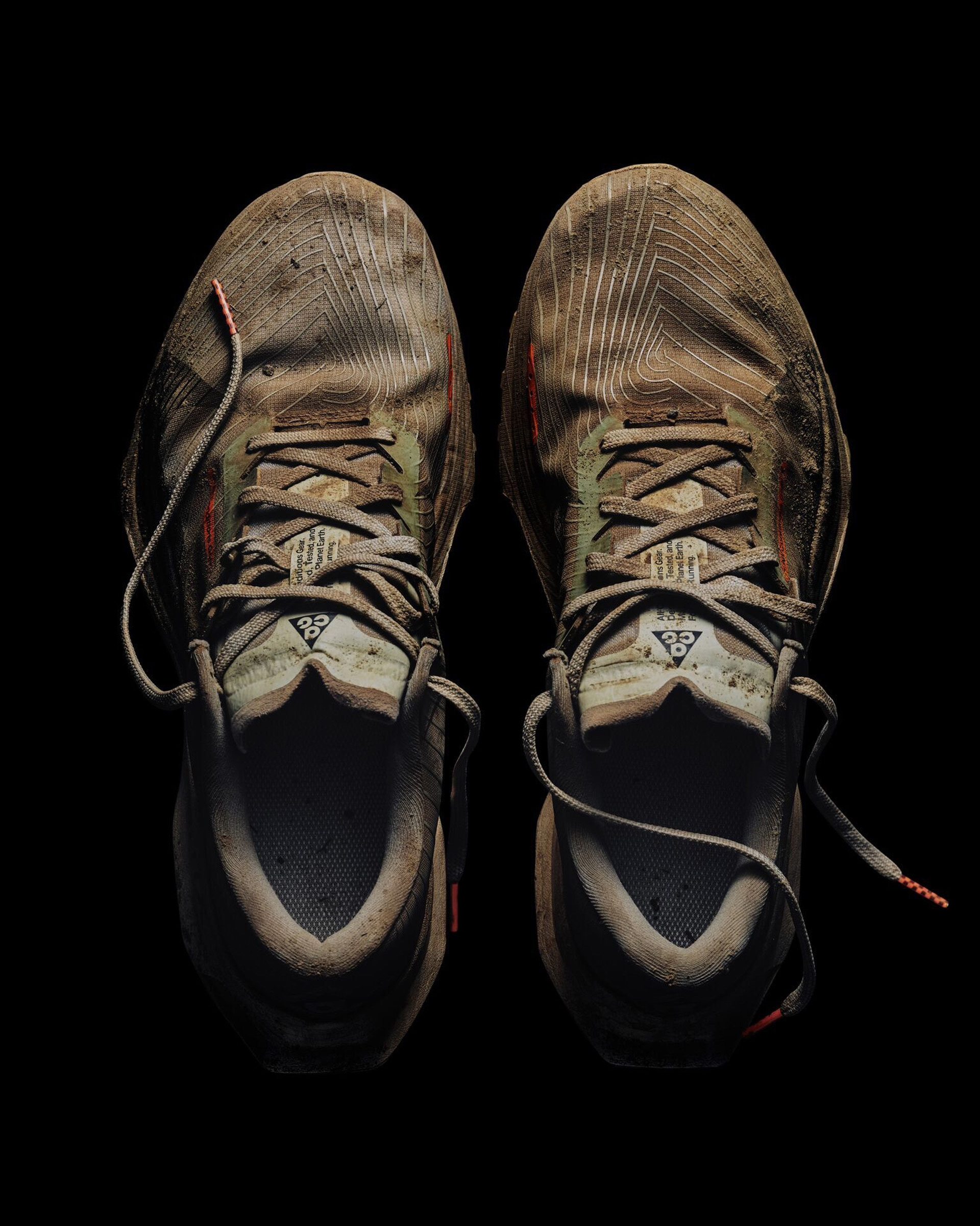 ナイキ ACG フットウェア ディレクターのブレンデン・マッカリースは次のように話します。「初期の段階から、ナイキ ACG ウルトラフライはトレイル特化型スーパーシューズを求めるナイキ アスリートと密に連携して開発されました。彼らは私たちに、トレイルシューズ向けのフィット感、形状、ライド感がどうあるべきかを見直すきっかけを与えてくれました。すべてのデザインに関する決断は彼らのフィードバックに基づいて行い、自然環境の中で検証されました。このシューズは自然の地形からインスピレーションを受けただけではなく、これまでにない速さを生み出すために作られています。」