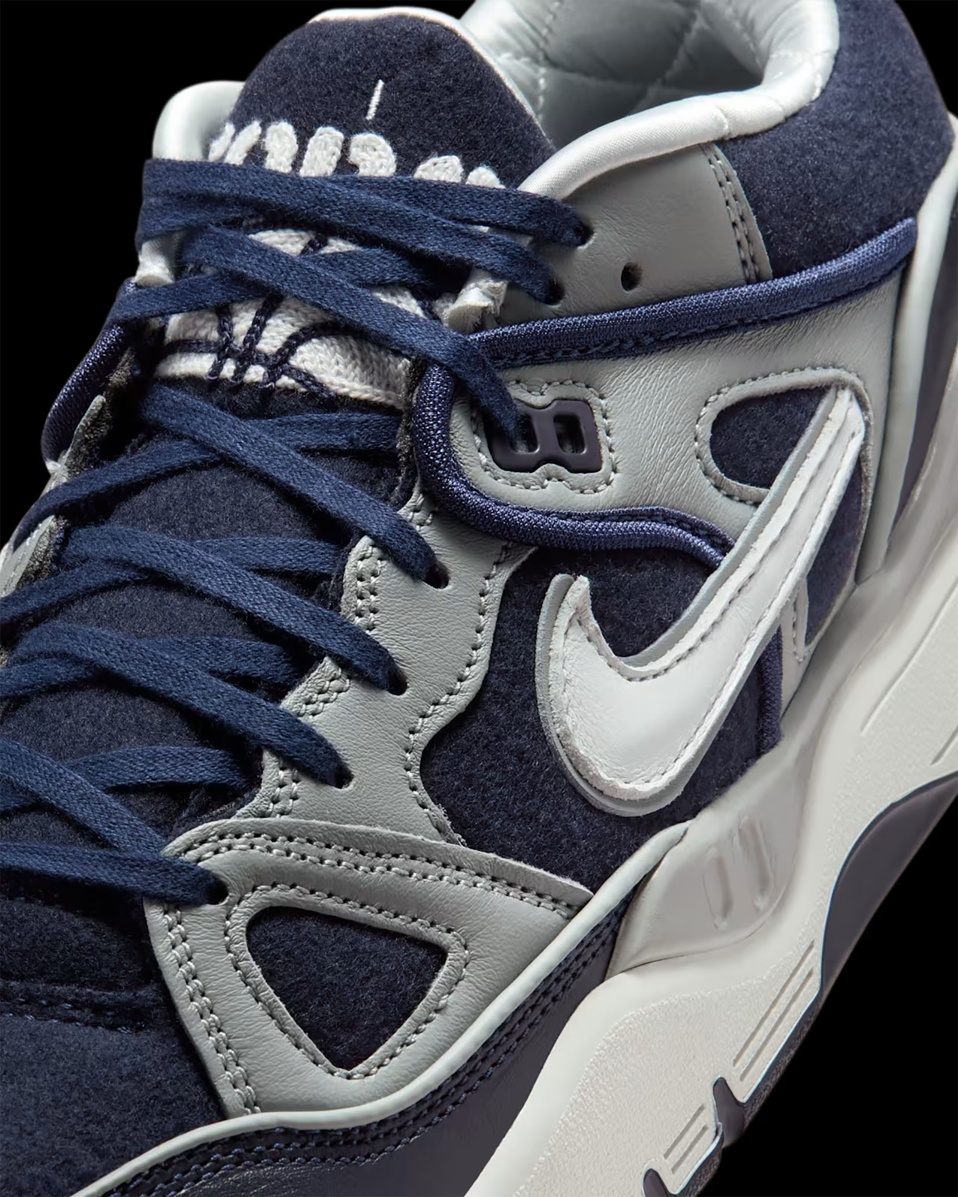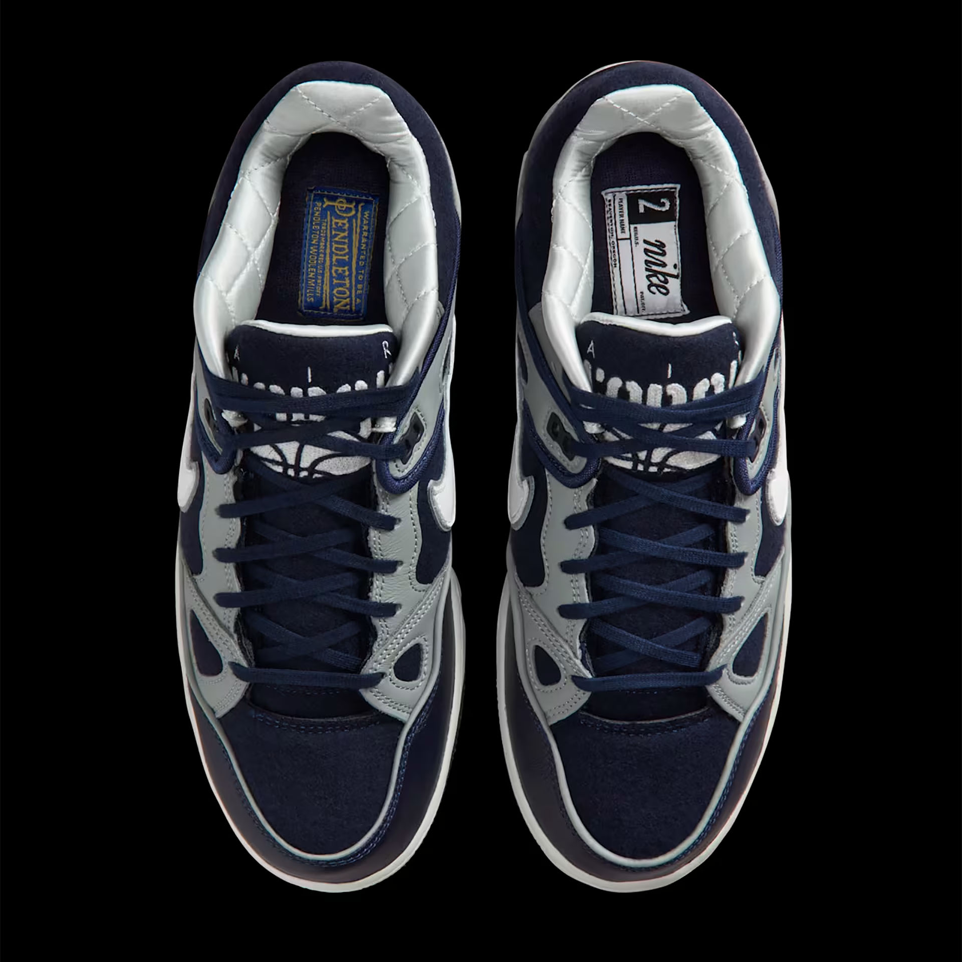 エア フォース 3でリアルなカレッジスタイルを表現するため、日本のストリートウェアのパイオニア、NIGOとのコラボレーションでは、素材選びに特にこだわっている。ペンドルトンの伝統あるウール素材にプレミアムレザーを組み合わせたこのシューズは、定番のクラシックなバーシティ ジャケットに絶妙にマッチする。シュータンにあしらったチェーンステッチのディテールがカレッジスタイルを引き立て、ソックライナーのロゴがウールの上質さを物語る。