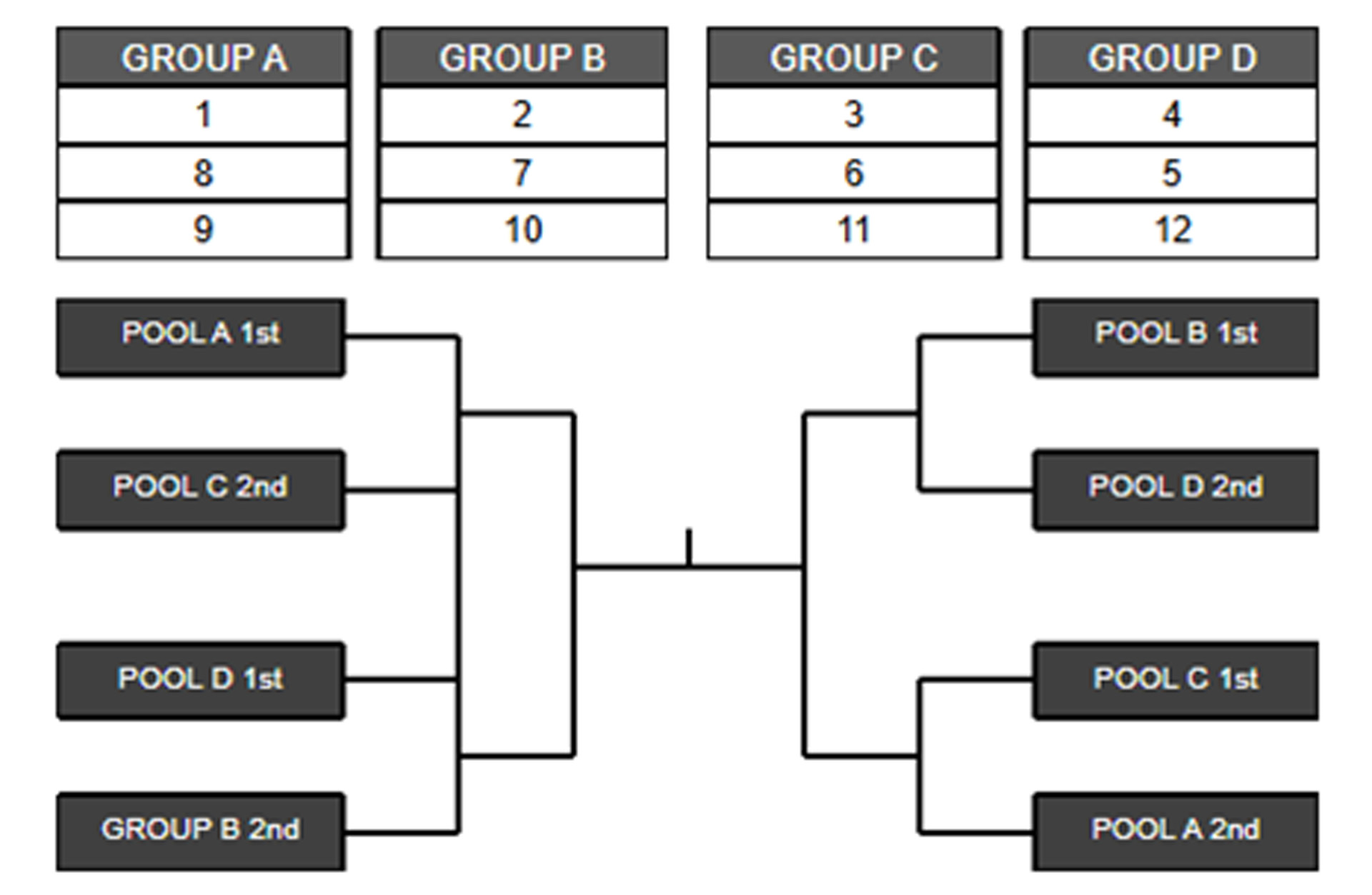12チームによる開催を基本として、3チーム×4グループによる総当りのグループリーグ戦を1日目に、各グループリーグの上位2チームずつ(計8チーム)による決勝トーナメントを2日目に行い、順位を決定します。