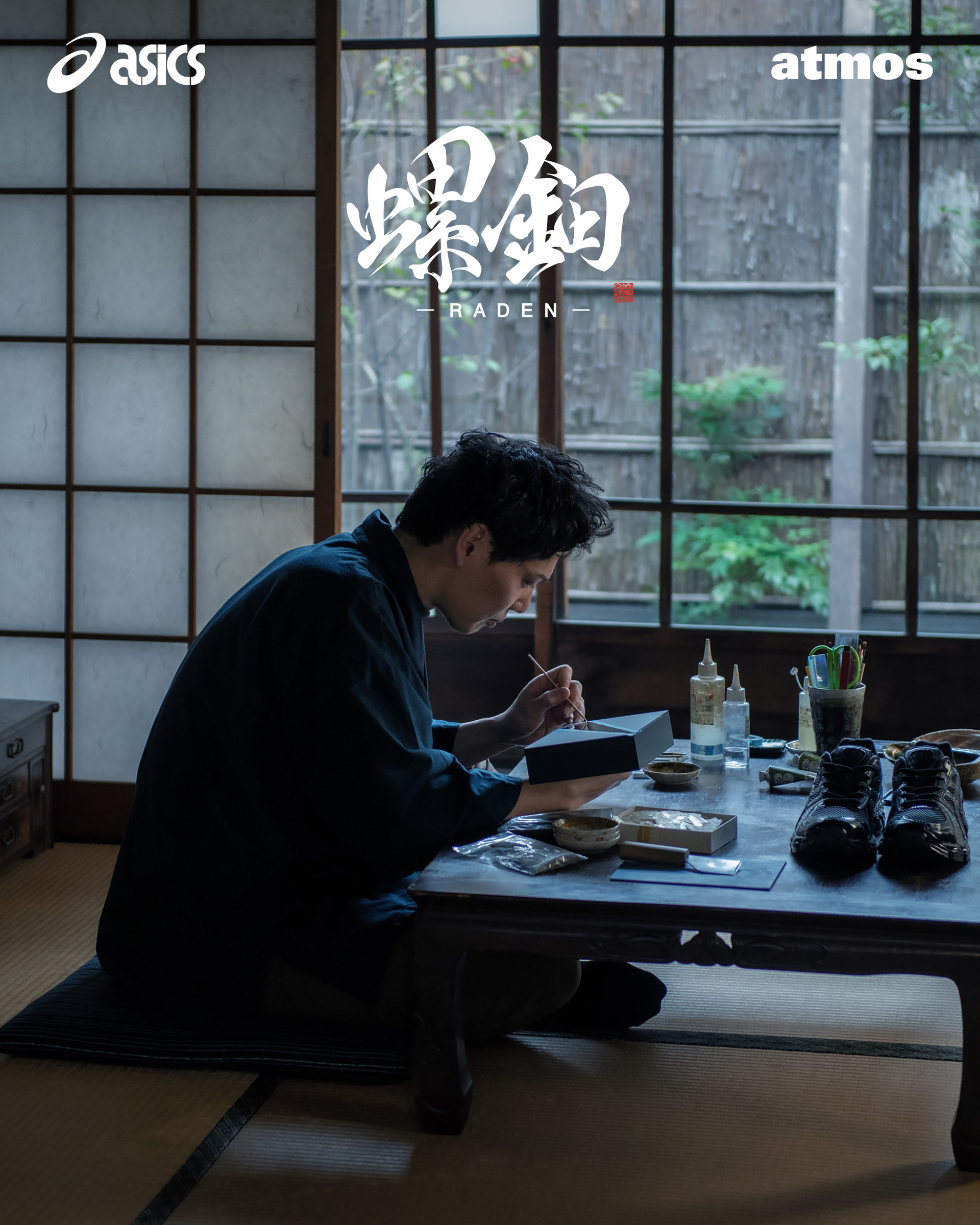 「螺鈿」は、貝と漆を用いた装飾技法で、八世紀頃にシルクロードを通じて日本に伝来したとされており、自然な貝の色味と輝きが生み出す妖艶な美しさは、「螺鈿」を知らない人でも思わず目を奪われるほどの魅力を放つ。今回の別注では、日本の伝統美とストリートカルチャーを融合させ、atmosならではのクリエイティブを体現したモデルとなっている。