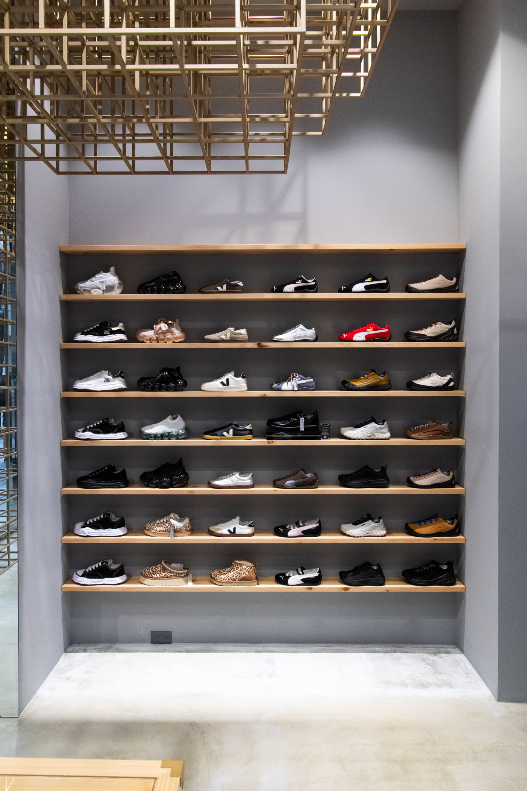 また、atmos 千駄ヶ谷店、京都店同様に「shoetree」の作品も展示。今回の店舗イメージに合わせ品位のあるデザインを意識した仕上がりとなっている。