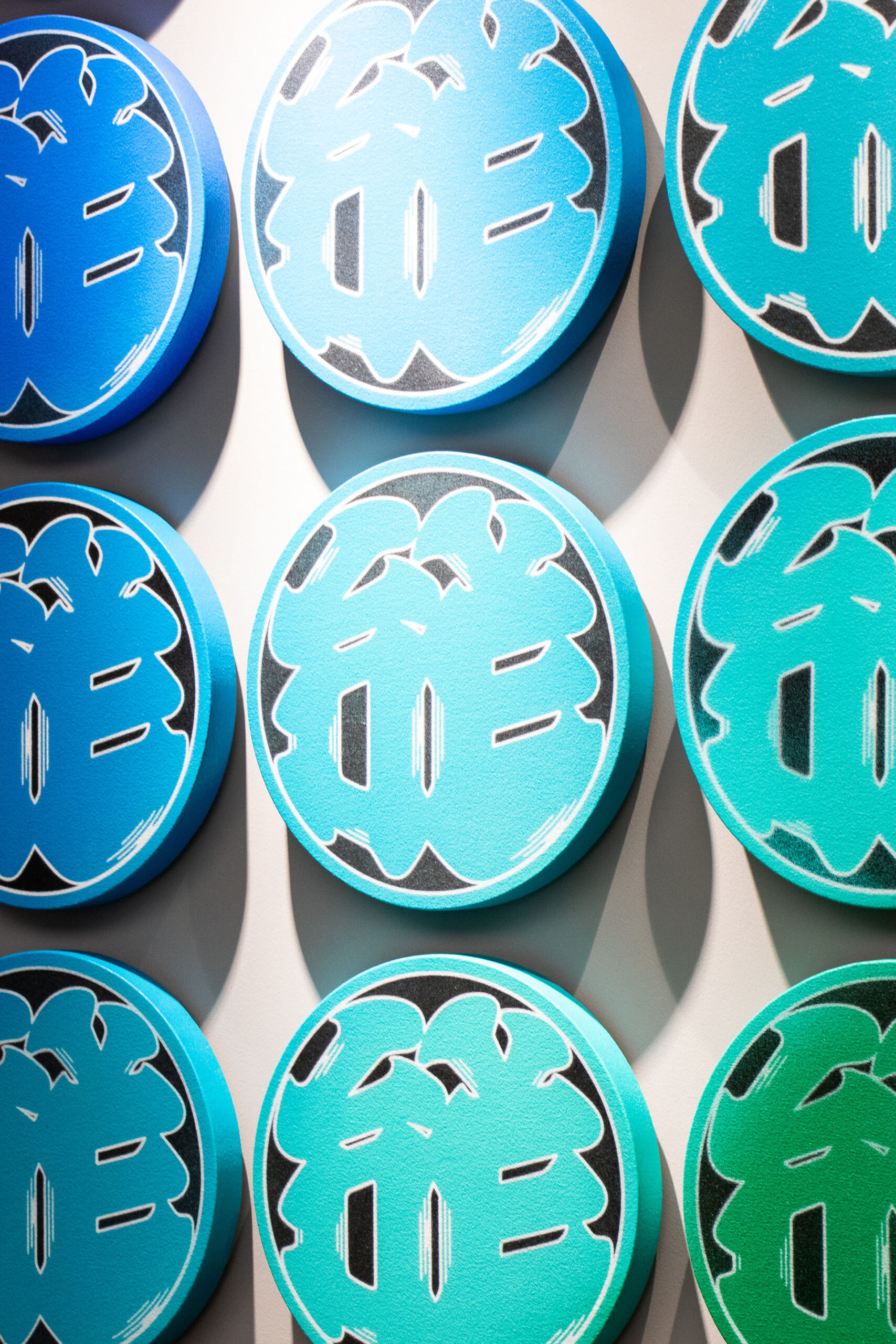日本の伝統的な「江戸文字」を現代アートとして再解釈するアーティスト「SNEAKERWOLF」が手掛けている。銀座の新たなモニュメントとなるよう、「カンジグラフィ」で制作された“atmos”と、『世界には愛が足りない』というメッセージから生まれた新作“LOVE”を無数の提灯をイメージした展示が際立たせている。
