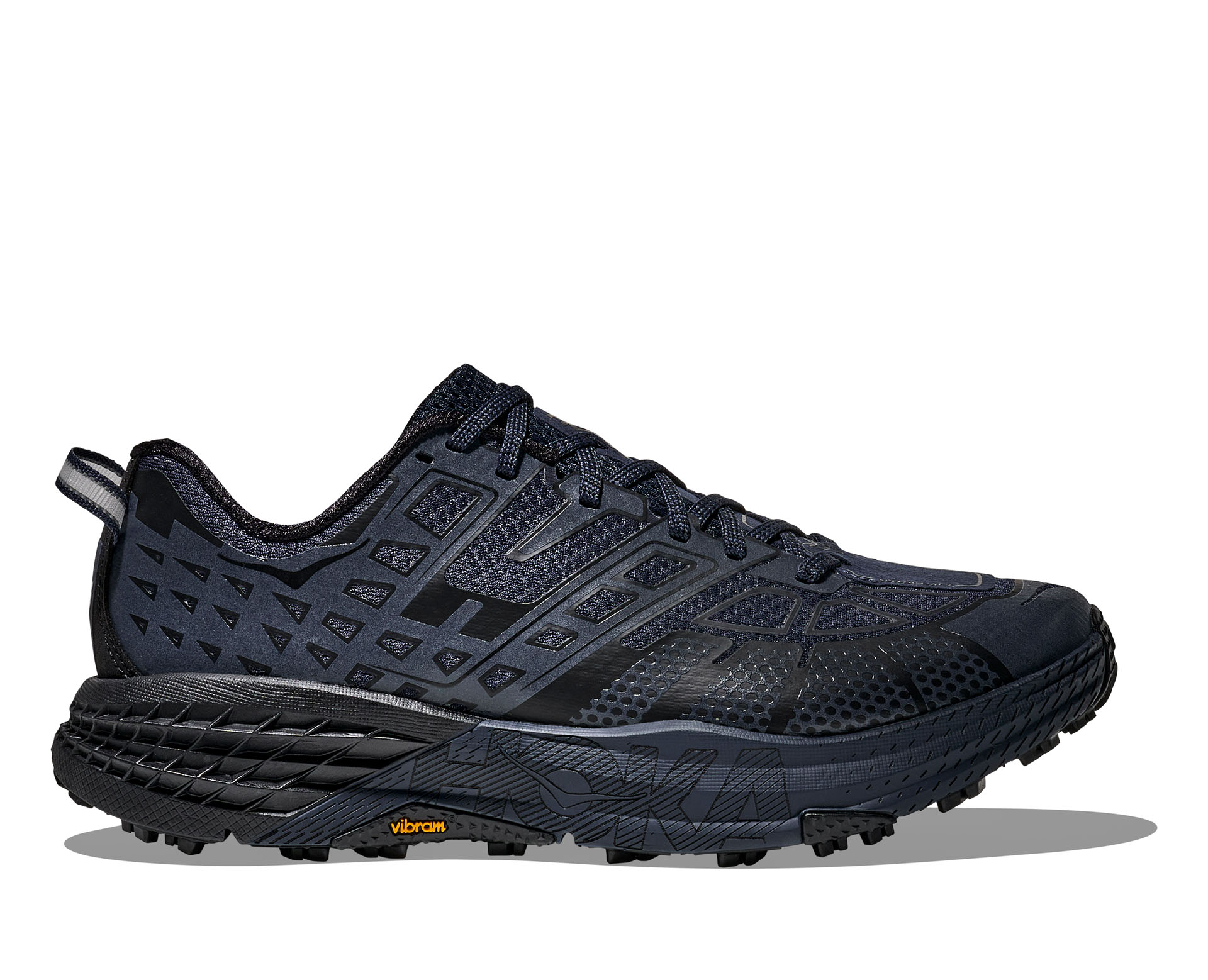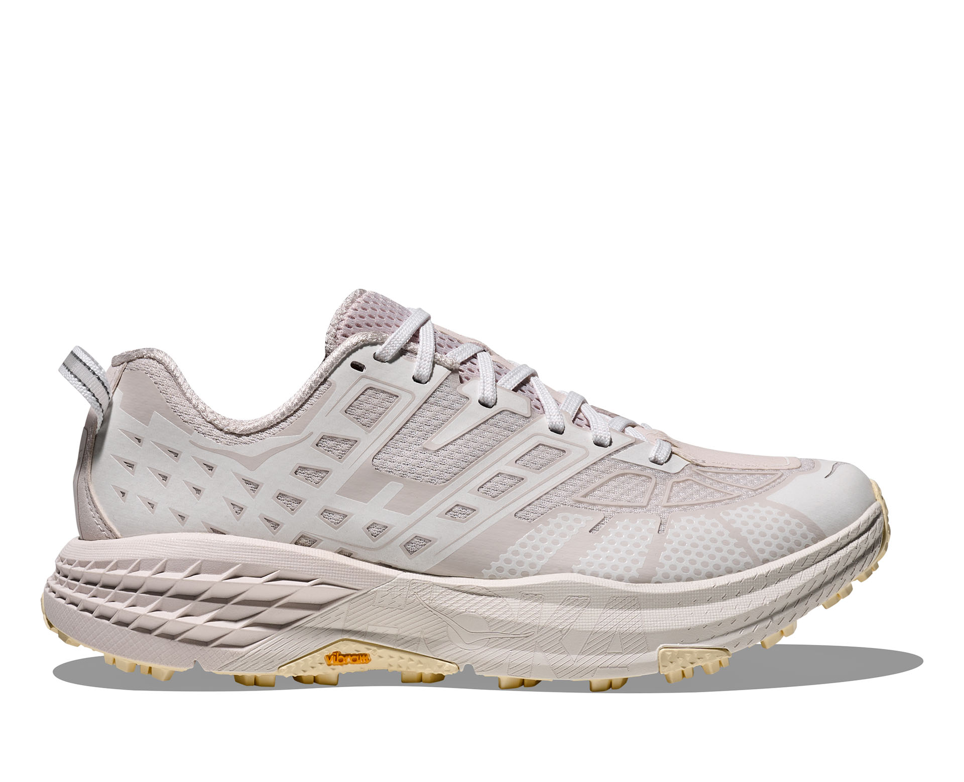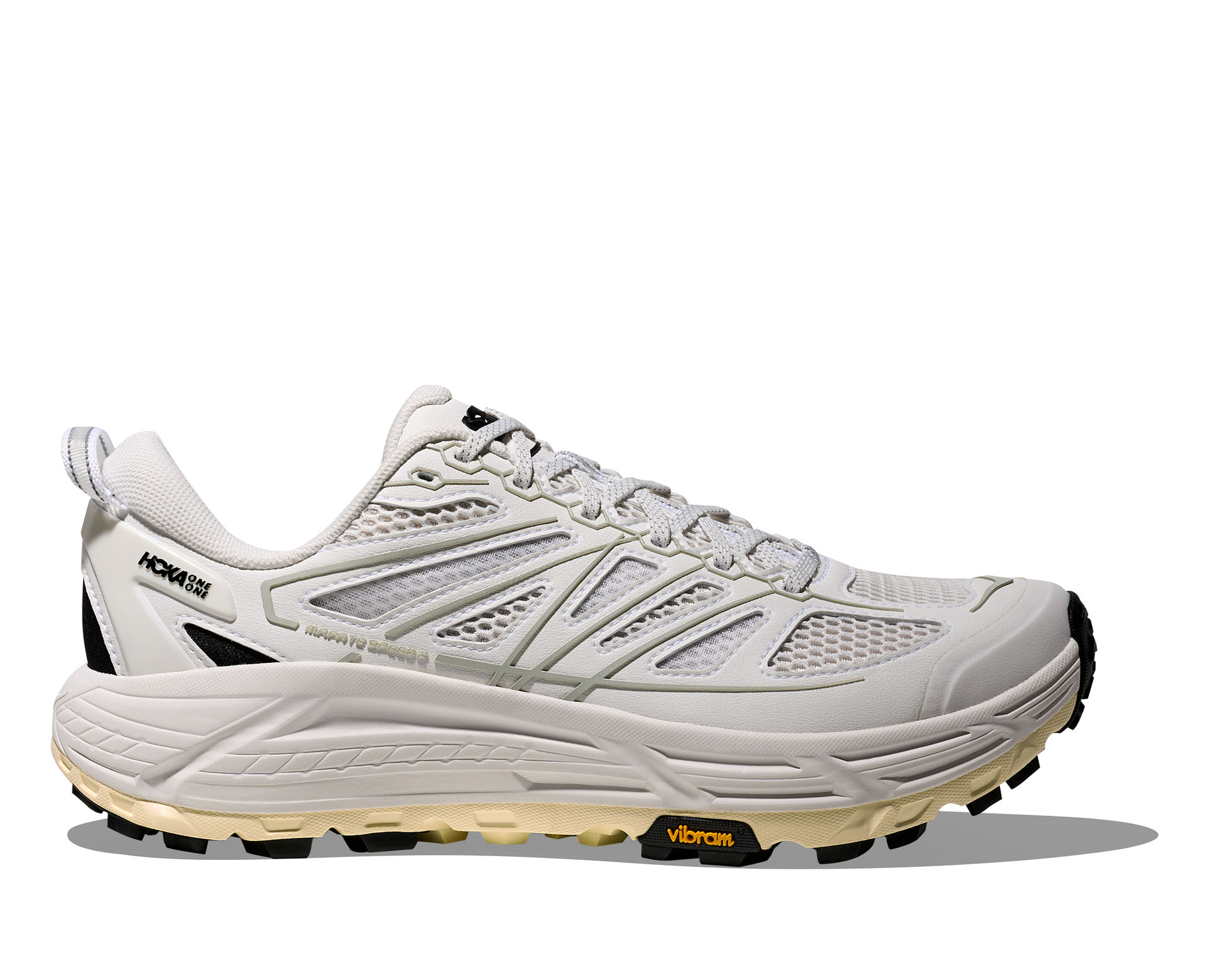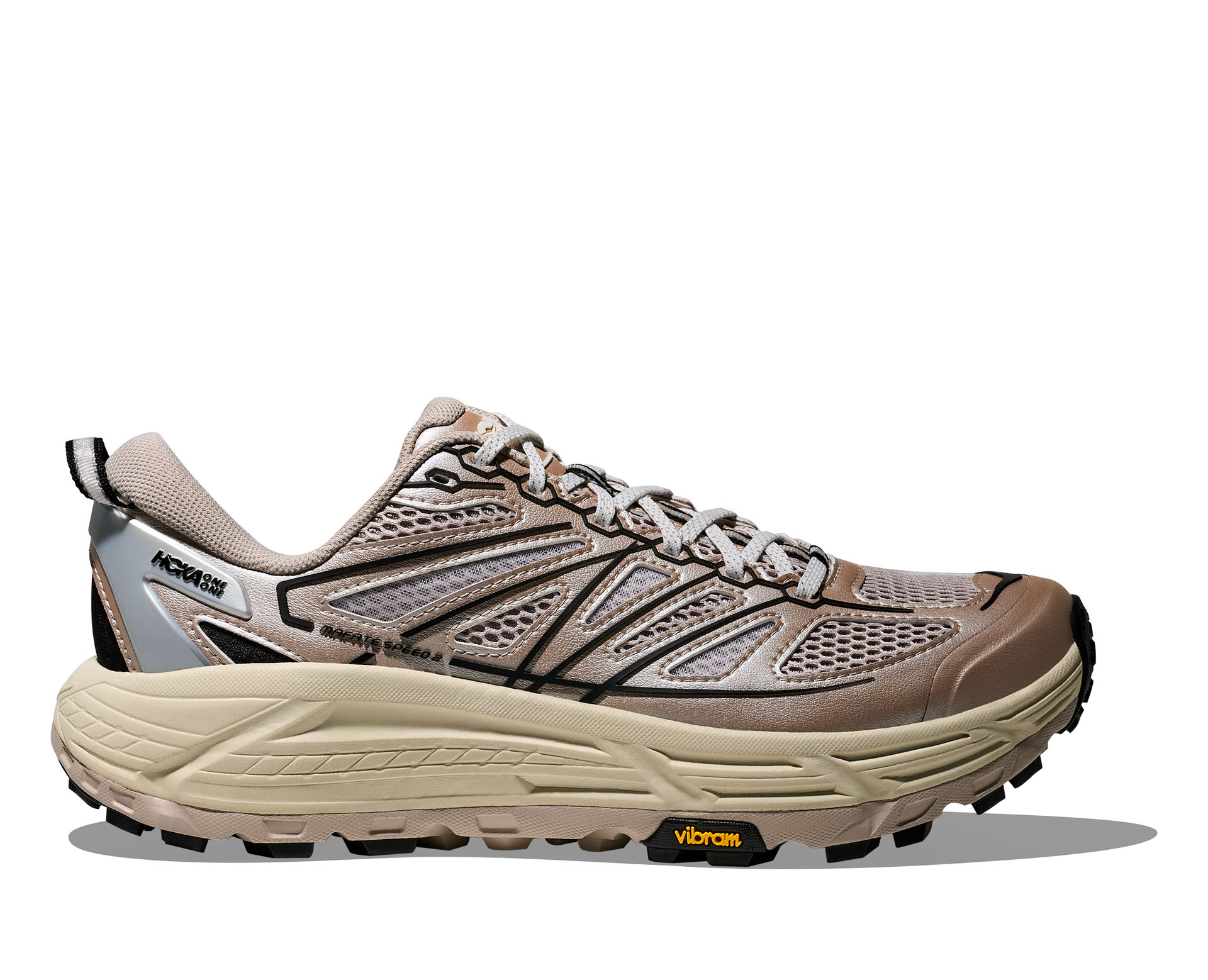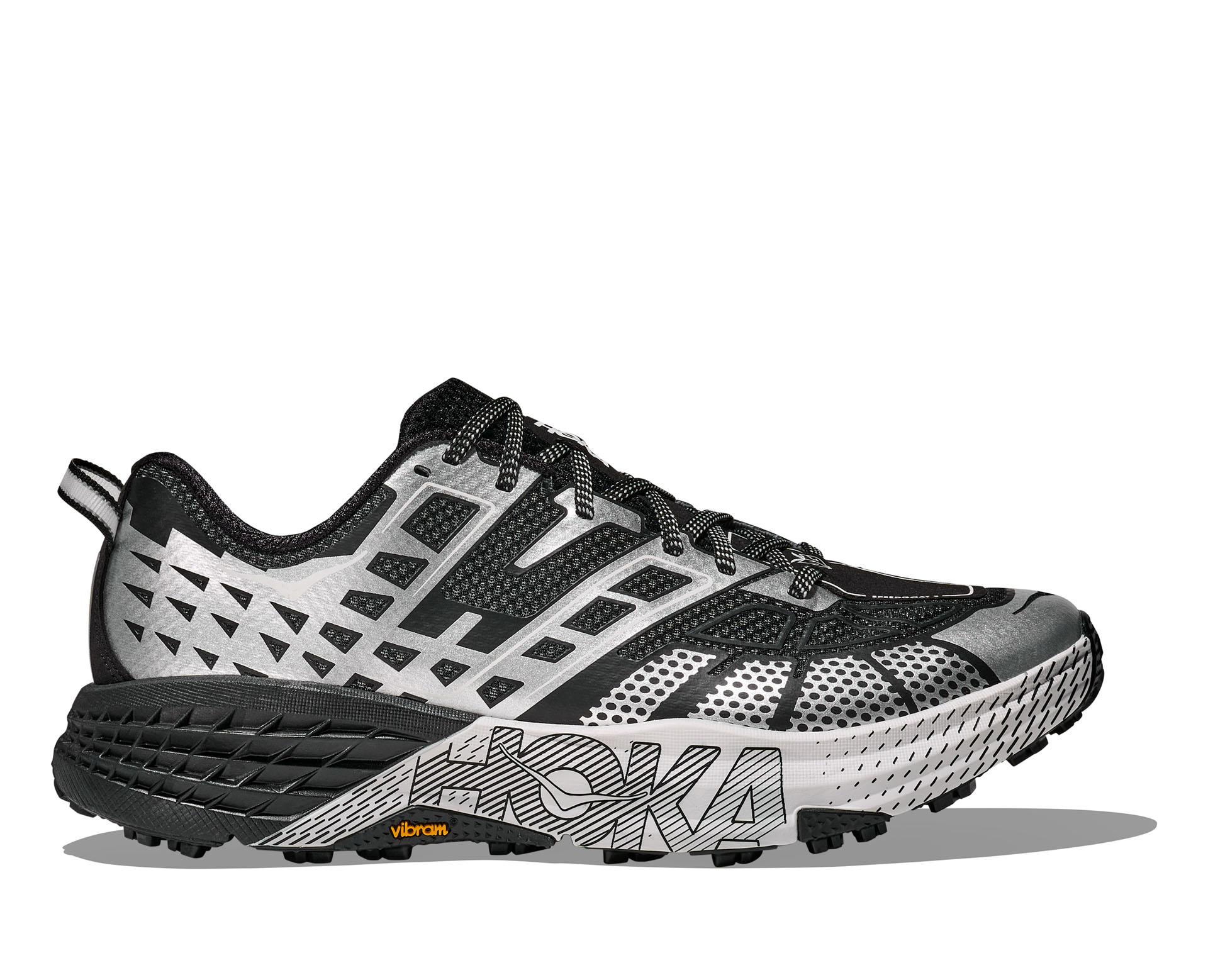 HOKAのトレイルランニングシューズの代表モデルを再構築。ツートンカラーのメタリックメッシュと大胆なリフレクティブパーツが特徴。ラギッドなマットラバーのヴァンプや、夜間でも視認性の高いリフレクティブミッドフットケージなど、機能性と存在感を両立している。