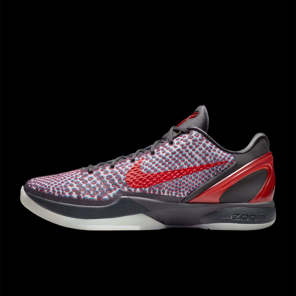 デビューから15年を経て、Kobe 6 3Dに待望の続編がついに登場。今回のバージョンは、優れた反発力のフォームや前足部のAir Zoom Turboユニット、接地感と俊敏性を強化する薄型のトラクションを含む改良されたテクノロジーが存在感を高めている。付属の3Dメガネをかけて、アッパーの飛び出す立体デザインを見よう。