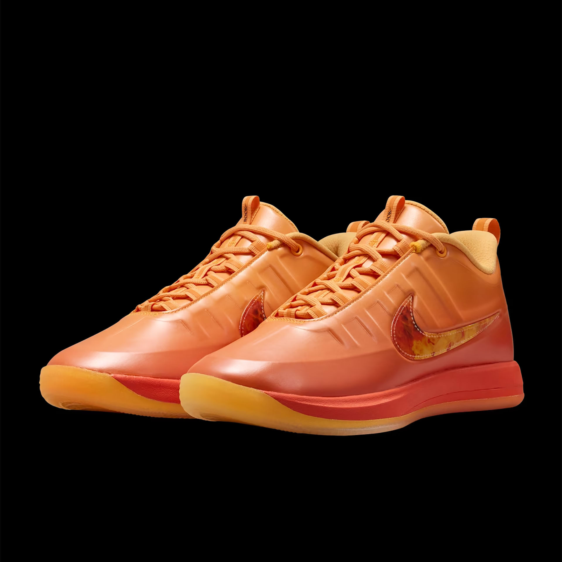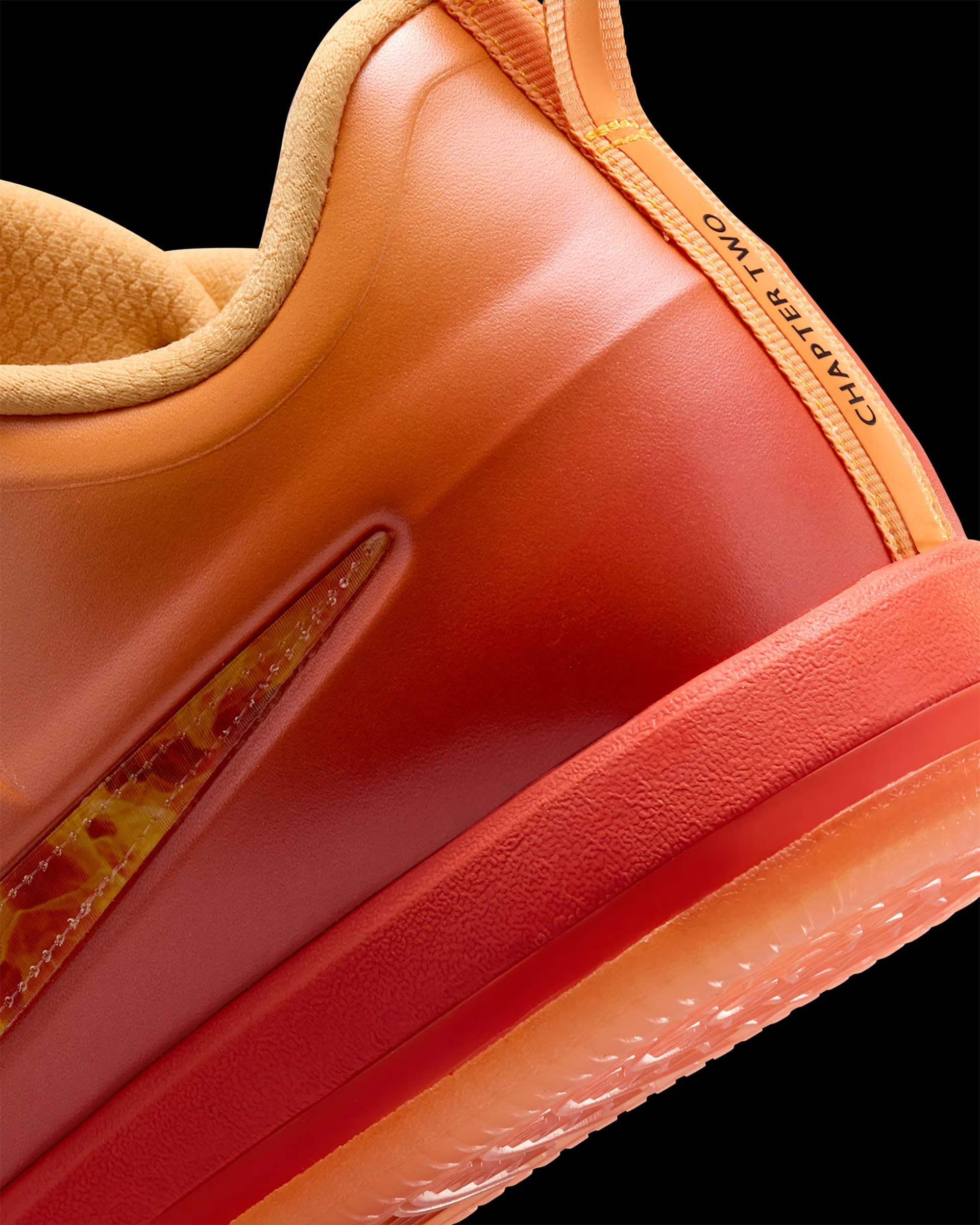ディフェンダーを翻弄する鮮やかな動きと、尽きることのない得点への執着。ブック 2は灰の中に蘇り、炎から生まれ出た不死鳥のごとく、圧倒的なエネルギーを放つ。エア フォース 1に由来するトラクションパターンには不滅の魂が宿り、そのパフォーマンスは他の追随を許さない。砂漠を焦がす灼熱の太陽を映し出すオレンジブレイズのカラー。その輝きに照らされれば、ライバルの闘志も潰えるはずだ。