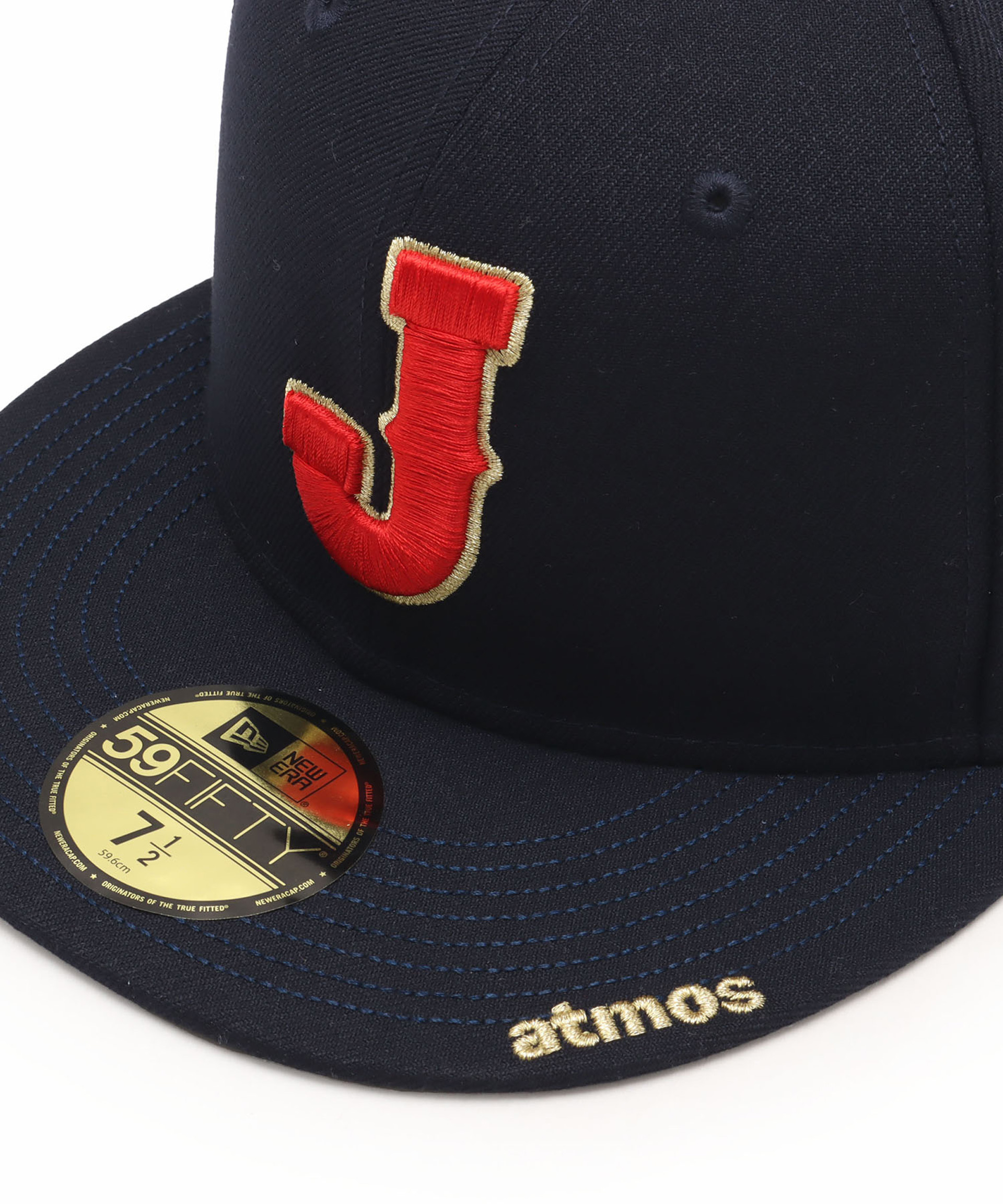 New Era®を代表するシルエット〈59FIFTY®〉をベースに、つば部分には「atmos」ロゴをゴールド刺繍であしらい、特別な一体感と高級感を演出。