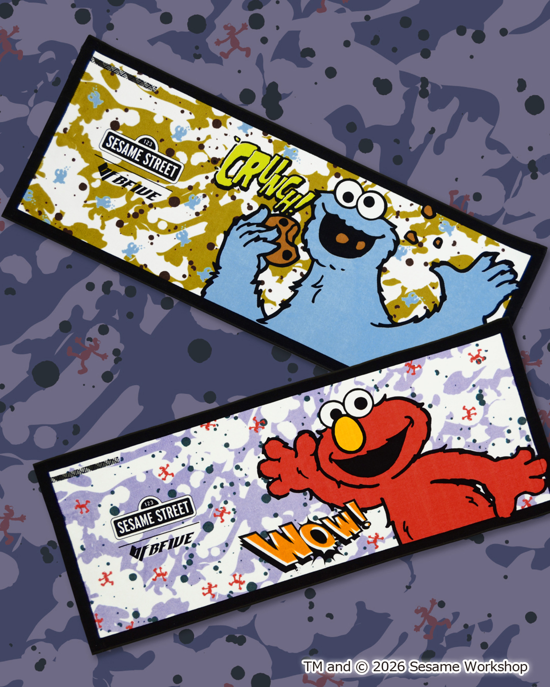 本コラボレーションは、2025年9月にリリースした第3弾に続く企画となります。第4弾となる今回は、春シーズンモデルのボタニカル柄やミリタリーテイストのカモフラ柄といった総柄アイテムをはじめ、シルクのように滑らかな肌触りと吸水速乾・UVカット機能を備えたTシャツ、大きくプリントされたセサミストリートの仲間たちが目を引くタオルなど、多彩なラインアップを展開します。