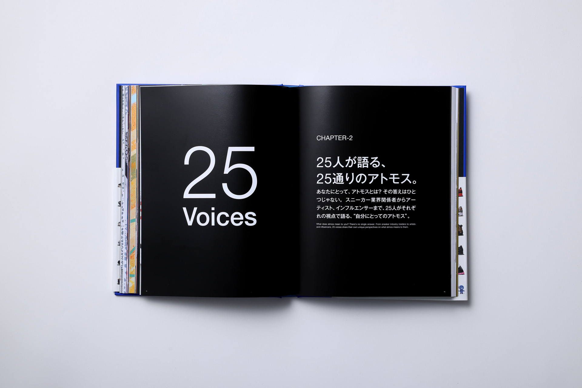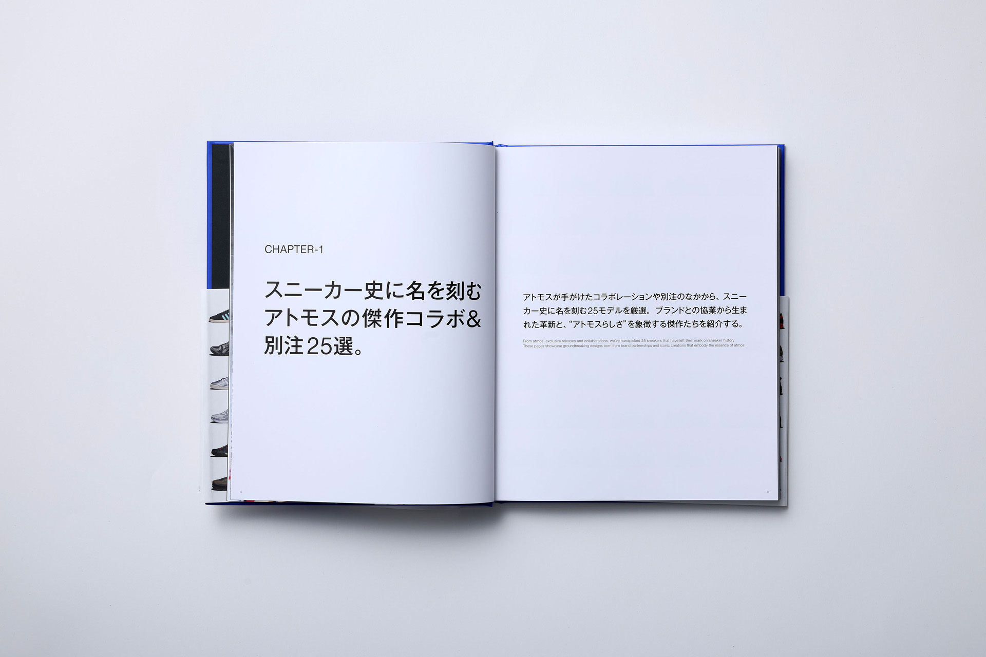 今回の記念ブックでは、歴代のコラボレーションモデルや別注モデル、所縁ある25名の方のインタビュー、国内外店舗の最新事情、2000年のオープンから現在までの歴史の振り返り、プロダクト&クリエイティブ シニアディレクター小島による「atmos」のこれまでとこれから、などのコンテンツで制作された全216ページ。