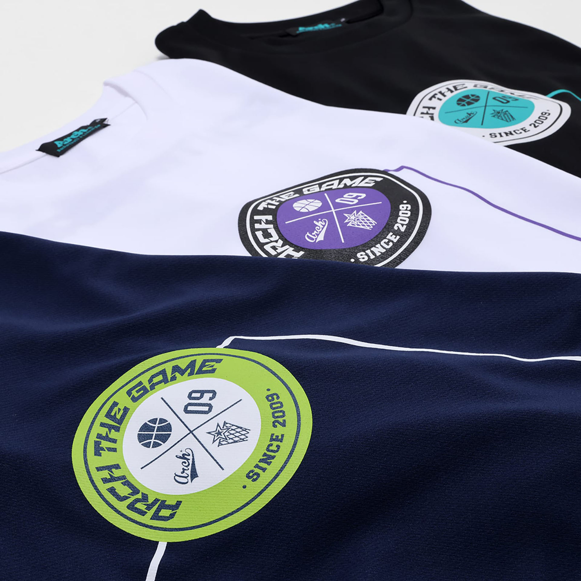 さらに、ストリートスタイルに描いたサークルロゴをデザインした「lettered logo」シリーズより、胸ポケット付コットンTシャツ・DRY-ポロシャツ・ロングパンツが登場。また、架空のバスケットゲームイベントのロゴをプリントしたDRY-Tシャツも同時リリース。