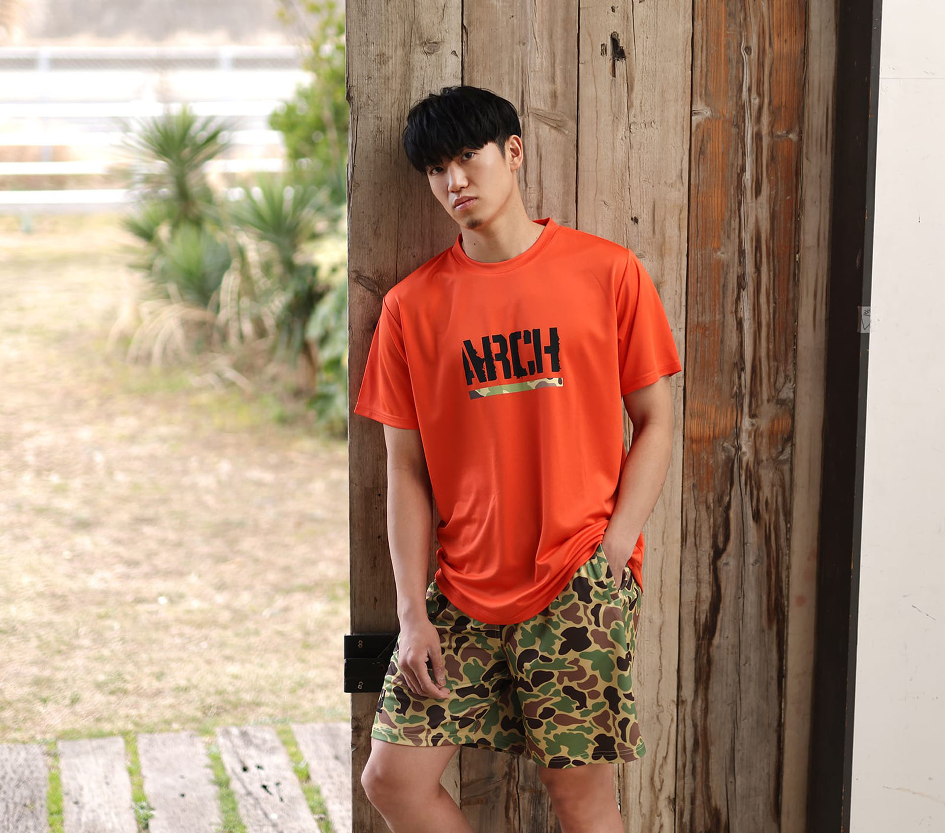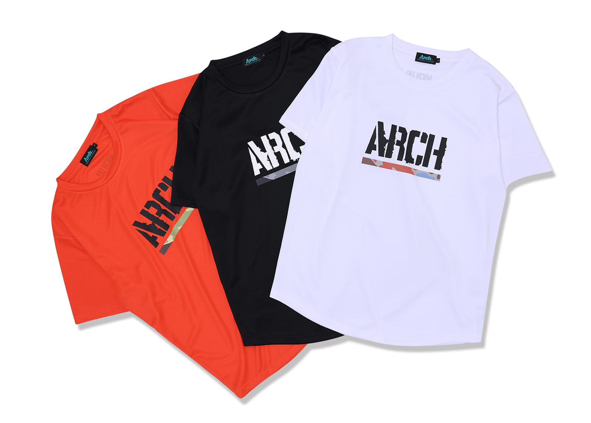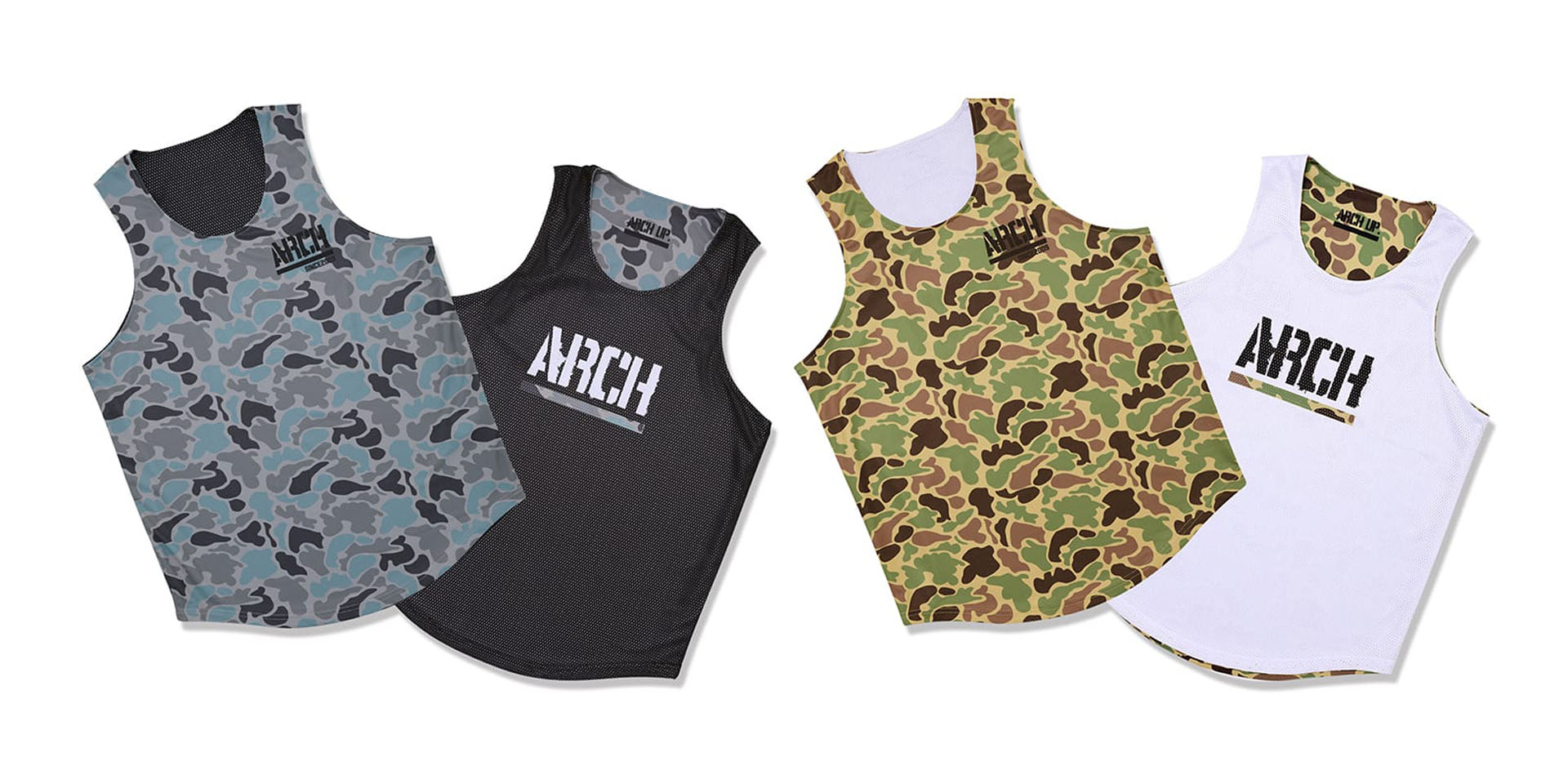 Arch 2026 Spring Collection 第1弾は、メインストリームとなる「duck camo」シリーズをリリース。ミリタリーテイストなダックカモフラージュ柄を落とし込んだ、DRY-Tシャツ・リバーシブルタンクトップ・ショーツ。