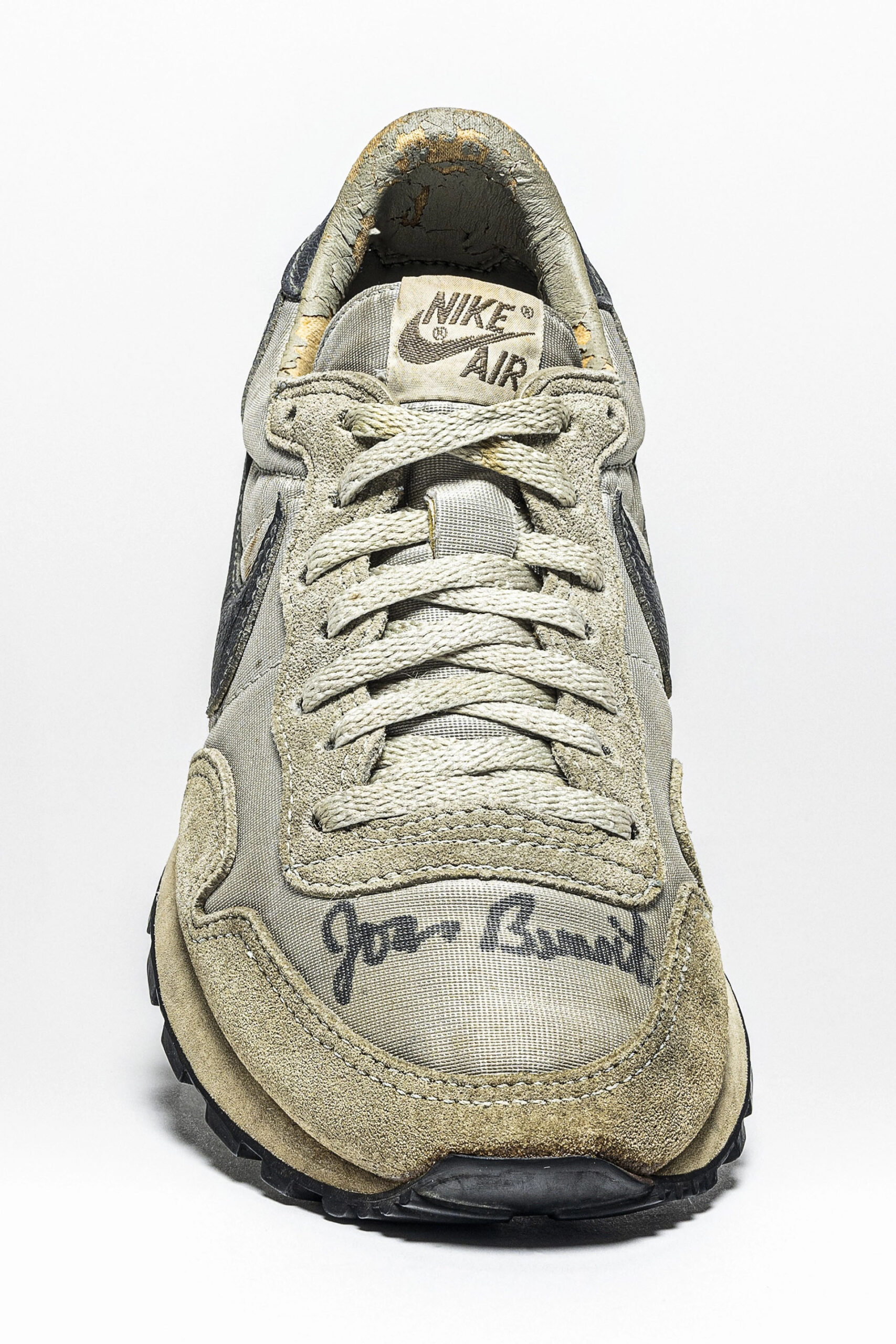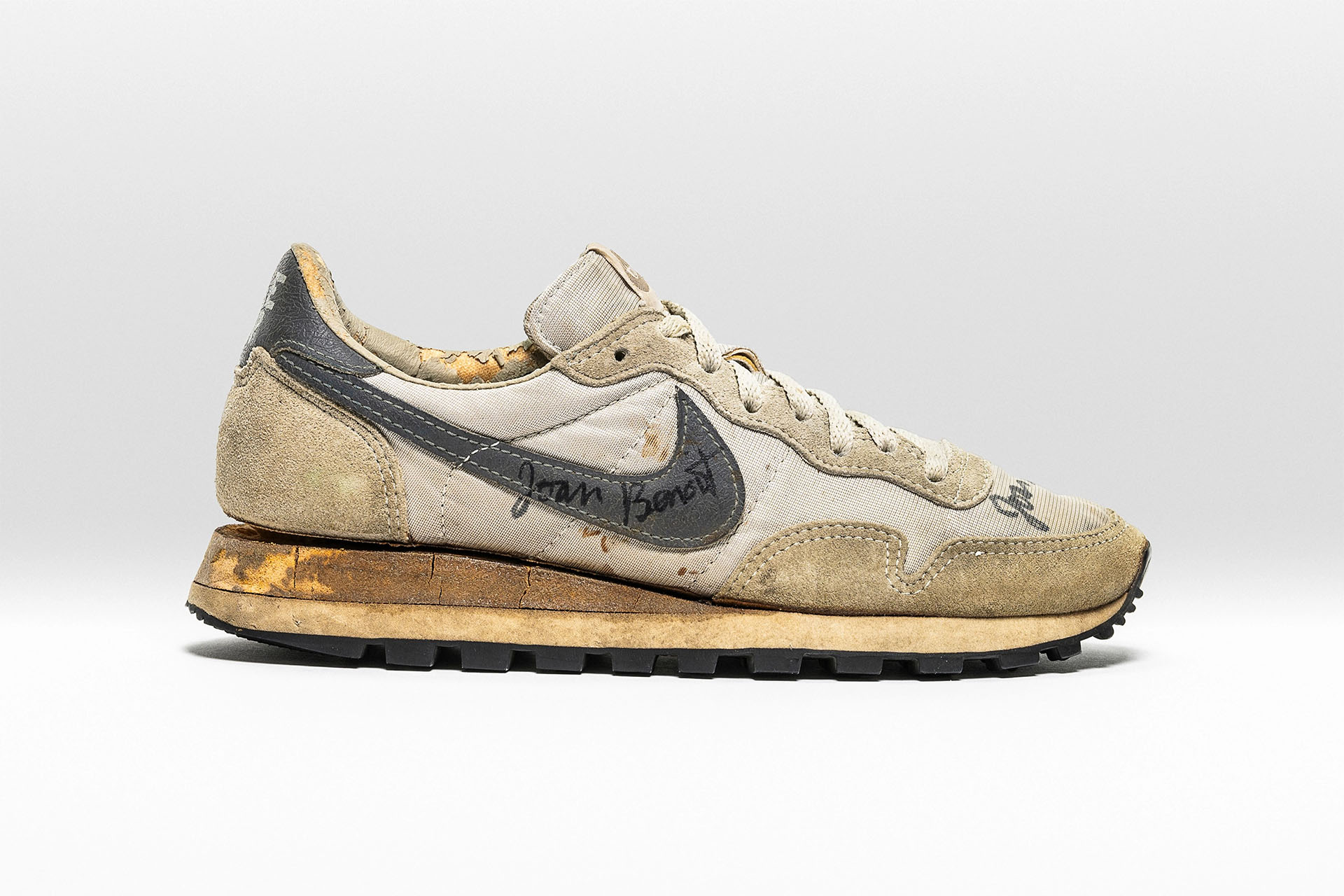 ジョーン・ベノイト・サミュエルソンが履き込み、サインしたこのペガサスには、ランナーが信頼し、人に薦めたシリーズ初期モデルへの愛着が見られます。