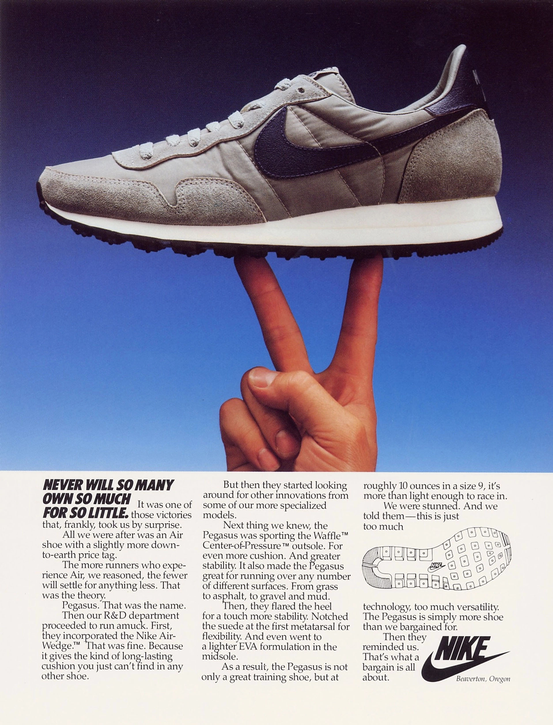 こうしてペガサスという名は定着しました。そしてその名前とともに、後にナイキを代表する最も愛されるランニングシューズへと続く物語が始まりました。