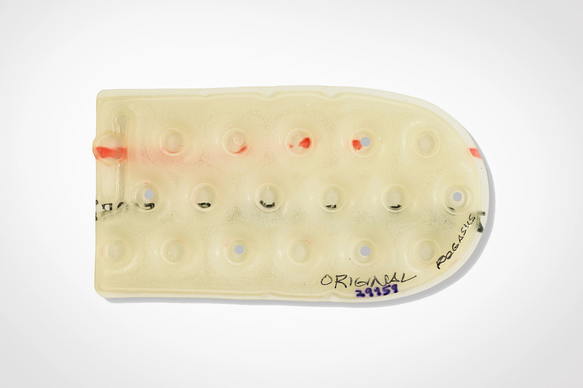 1983年、ペガサスに採用されたオリジナルのヒール エア ウェッジは、フルレングス エアのコストをかけることなく、ヒールストライク時にクッショニングを発揮するために設計された、より小型で機能を絞ったエア ユニットでした。