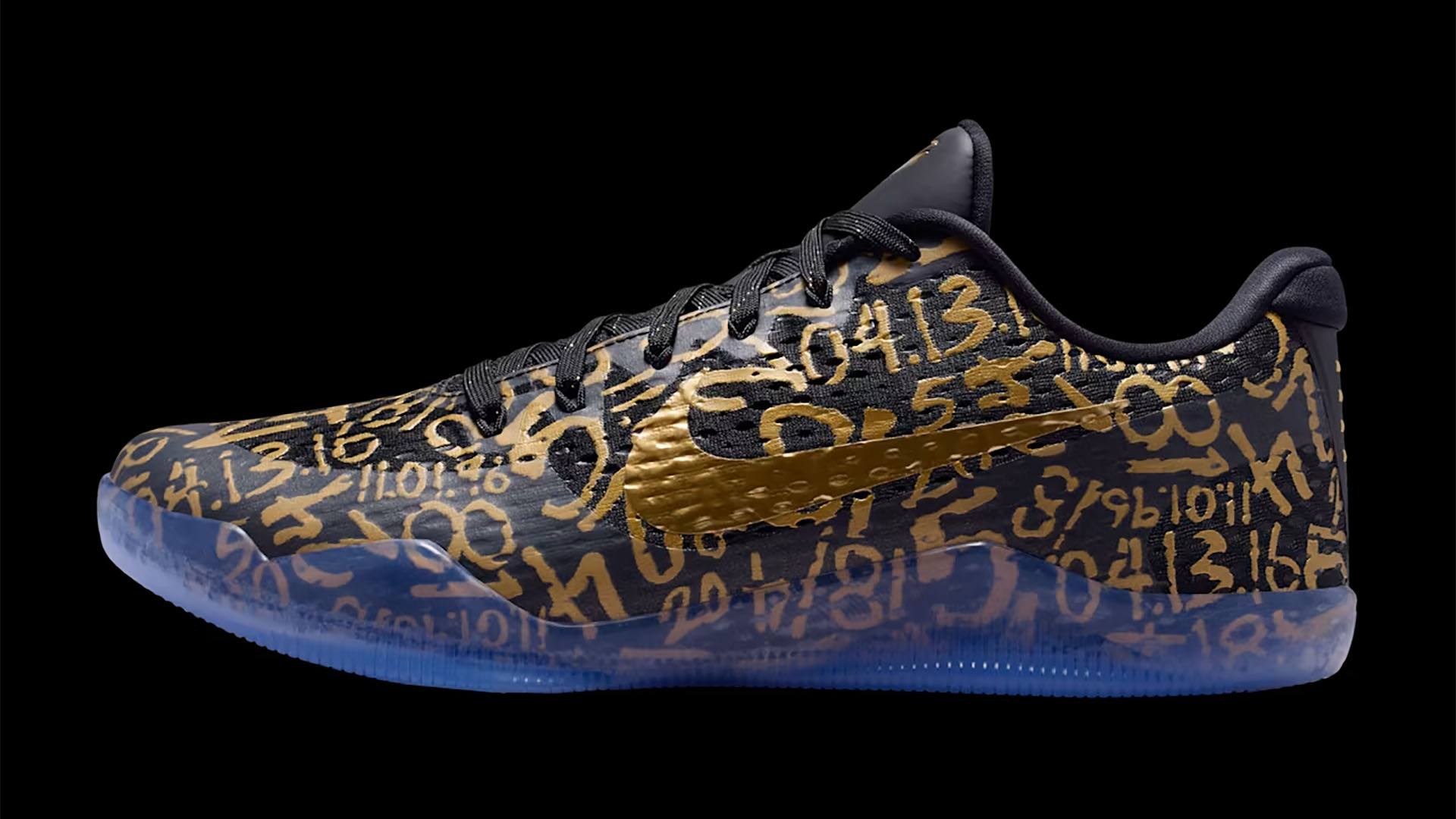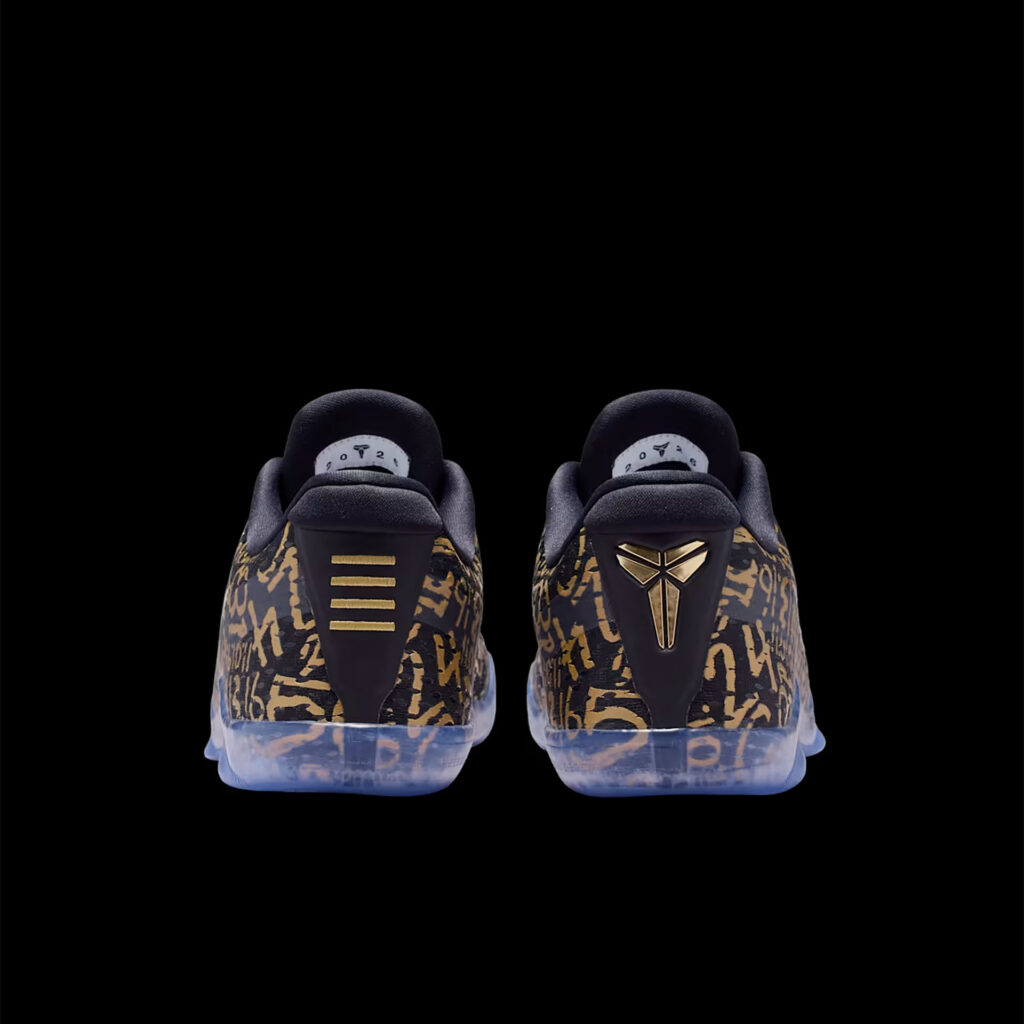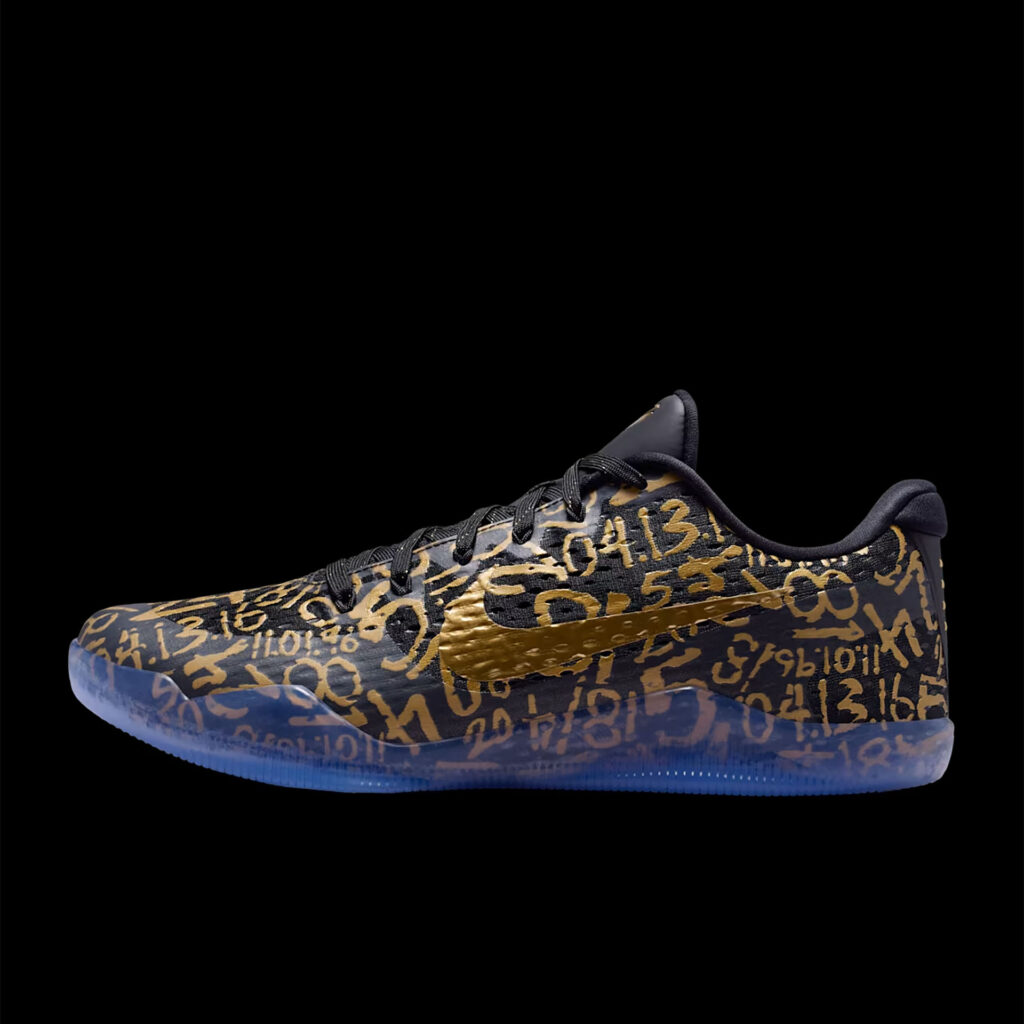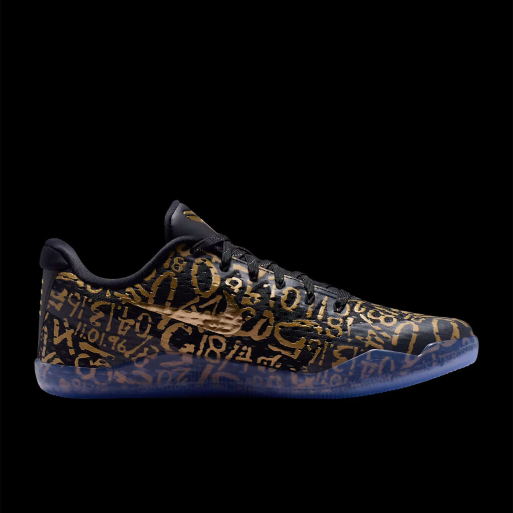 ブラックのメッシュアッパーに、メタリックゴールドのナンバーモチーフを全面にあしらったデザイン。オリジナルのコービー 11で使われていたLunarlonフォームに代わり、ReactXドロップインミッドソールを搭載した。かかとにはAir Zoomユニットを組み合わせることで、反発性に優れたクッショニングを実現。さらに、アウトソールのトレッドパターンを改良し、優れたトラクションとコートへの接地感をもたらす。
