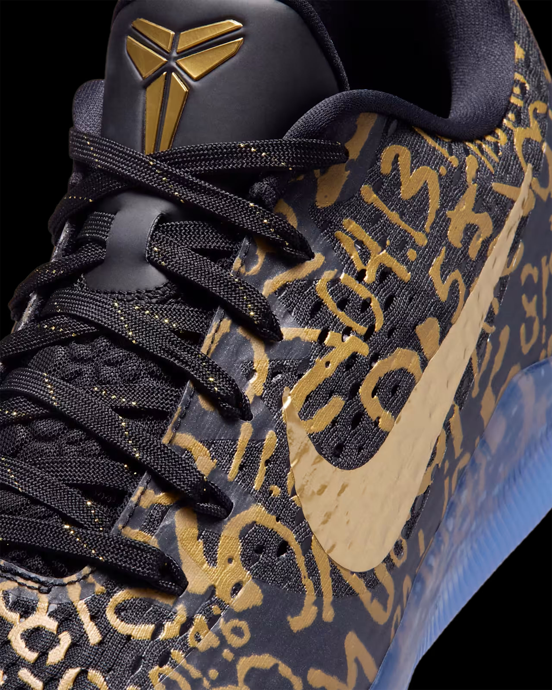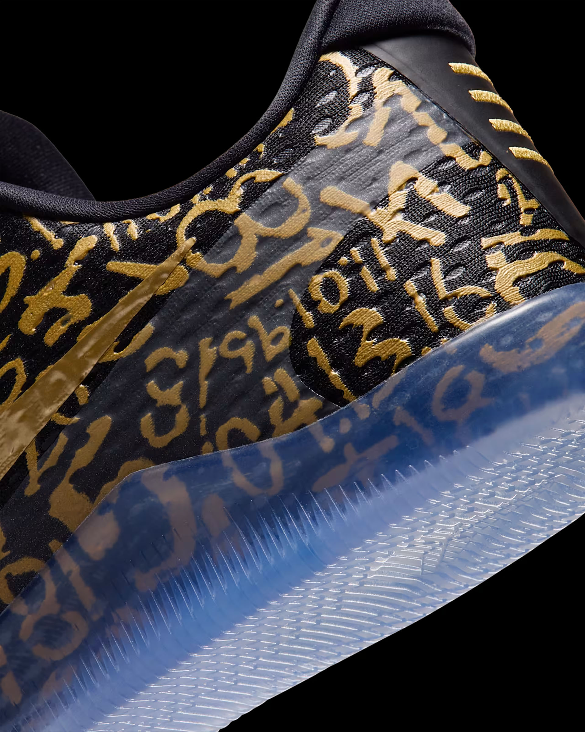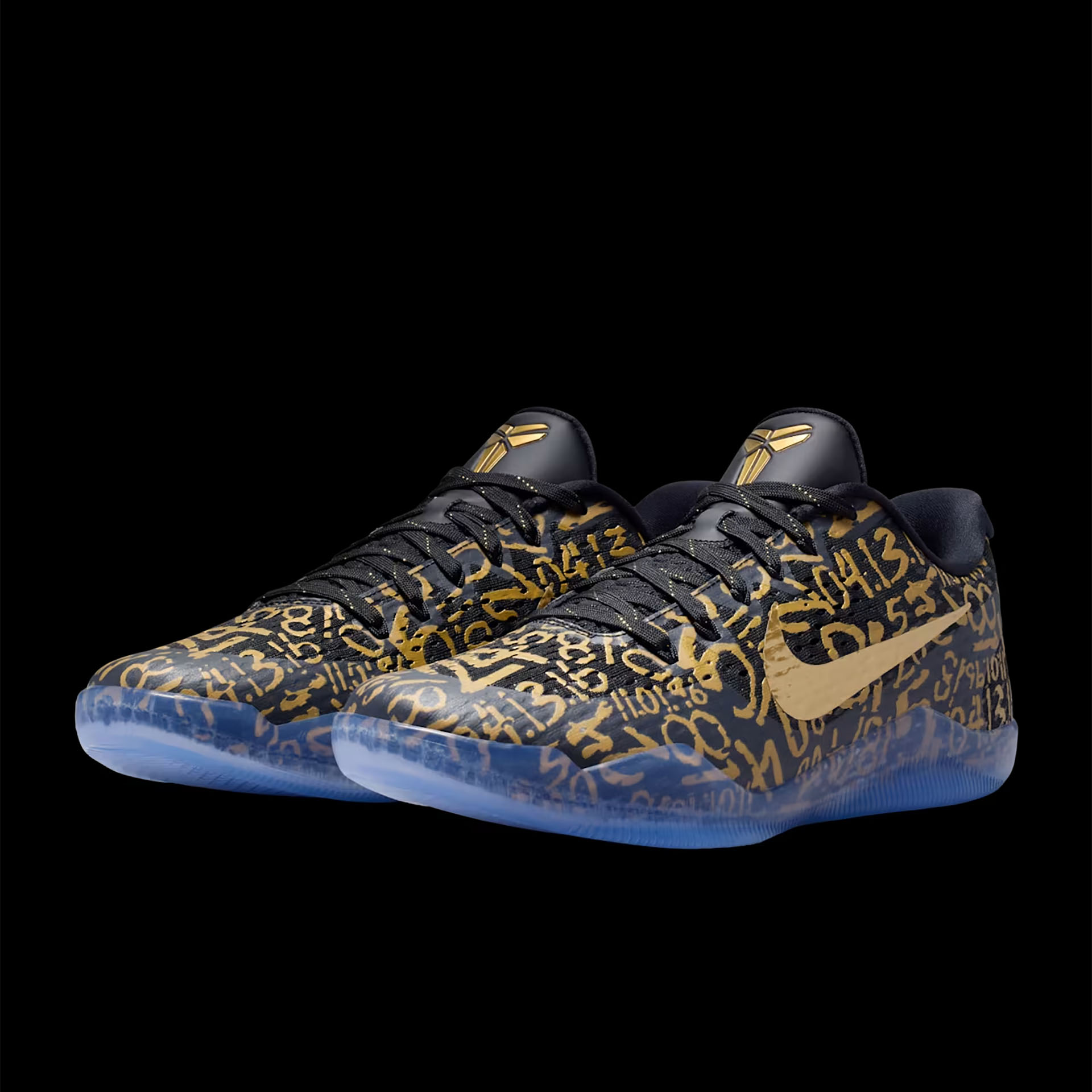 ブラックのメッシュアッパーに、メタリックゴールドのナンバーモチーフを全面にあしらったデザイン。オリジナルのコービー 11で使われていたLunarlonフォームに代わり、ReactXドロップインミッドソールを搭載した。かかとにはAir Zoomユニットを組み合わせることで、反発性に優れたクッショニングを実現。さらに、アウトソールのトレッドパターンを改良し、優れたトラクションとコートへの接地感をもたらす。